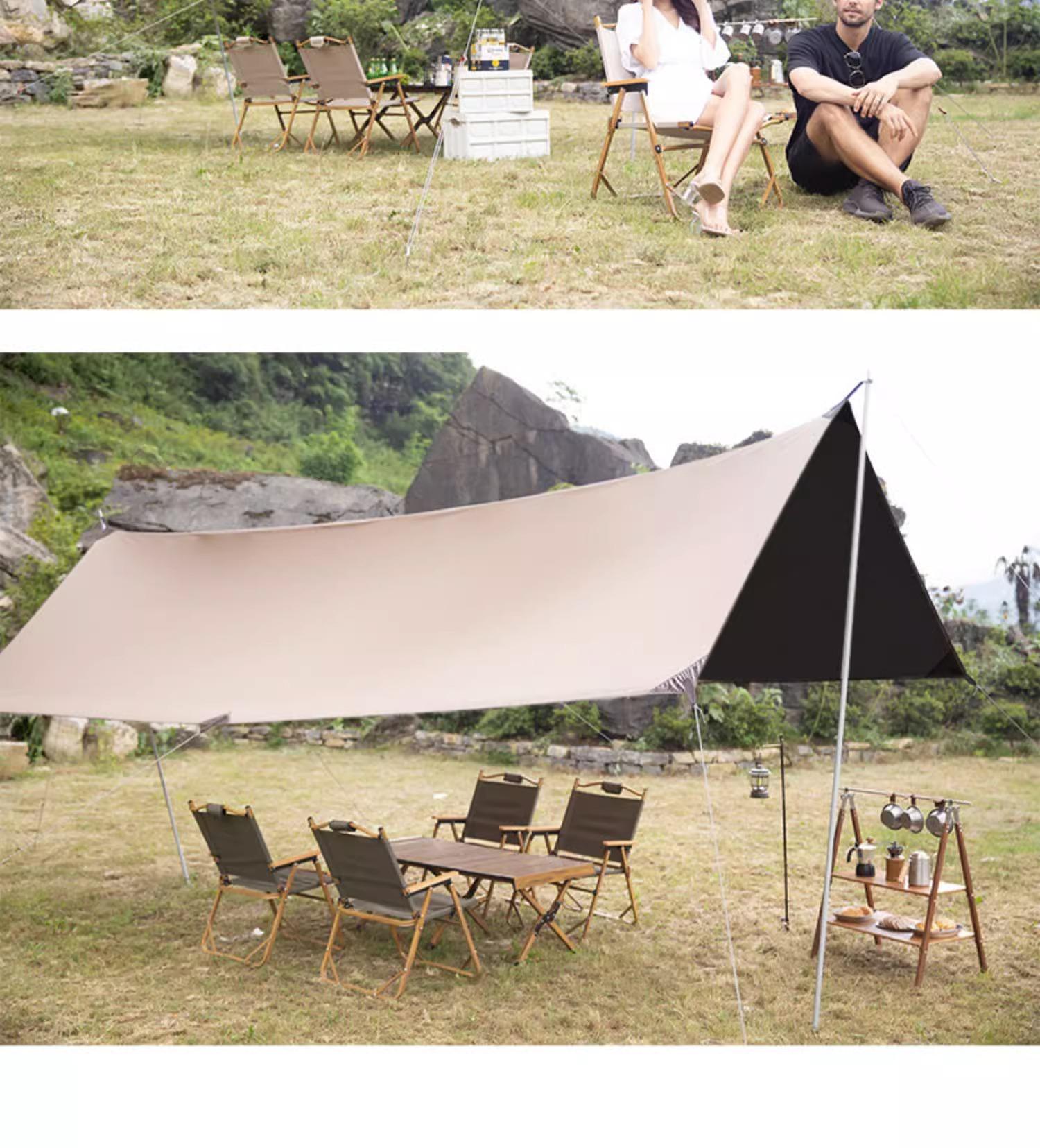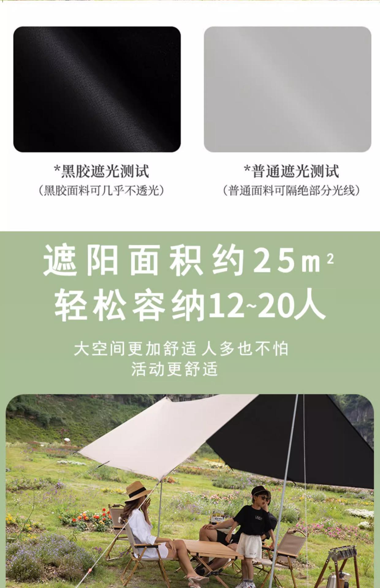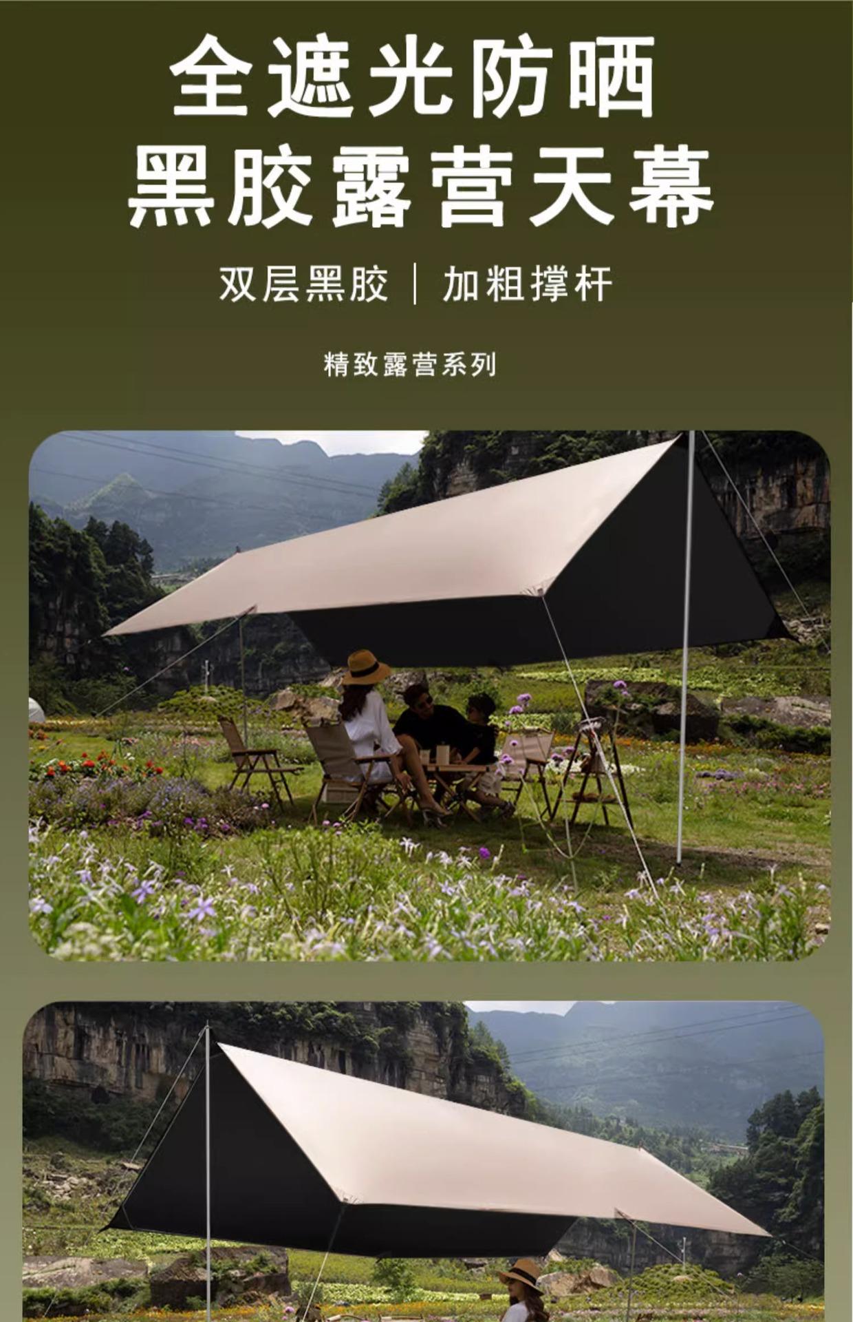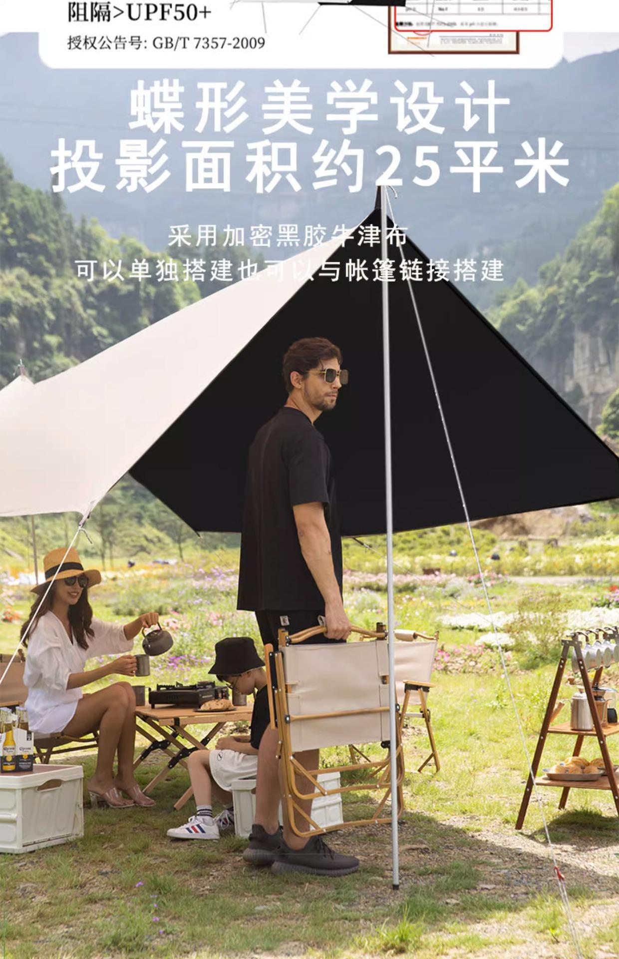 Tienda de campaña de goma negra para exteriores, parasol portátil con revestimiento de protección solar grueso y forma octogonal de mariposa.