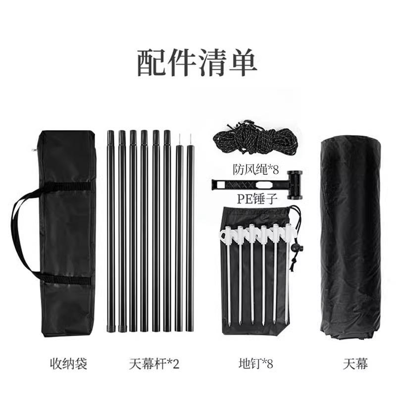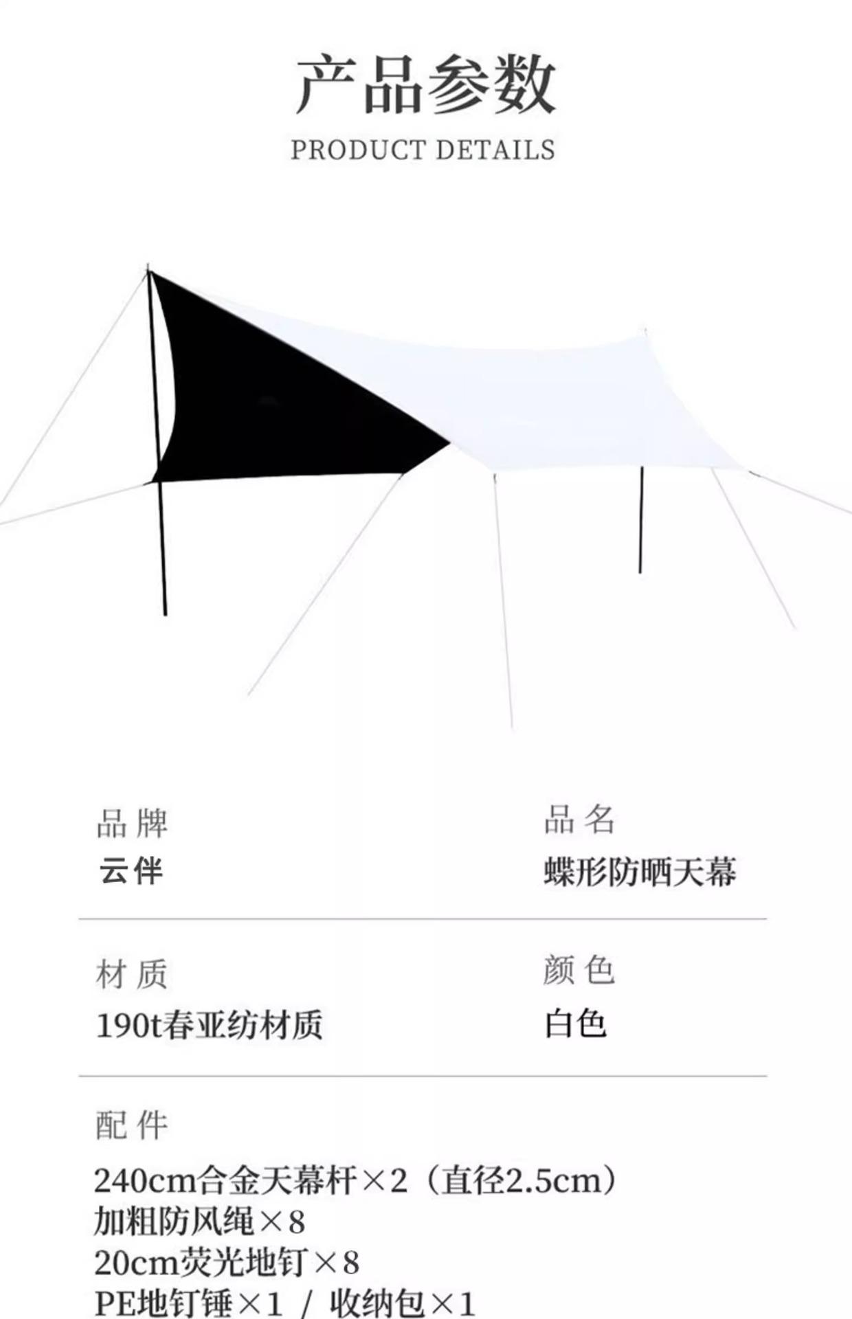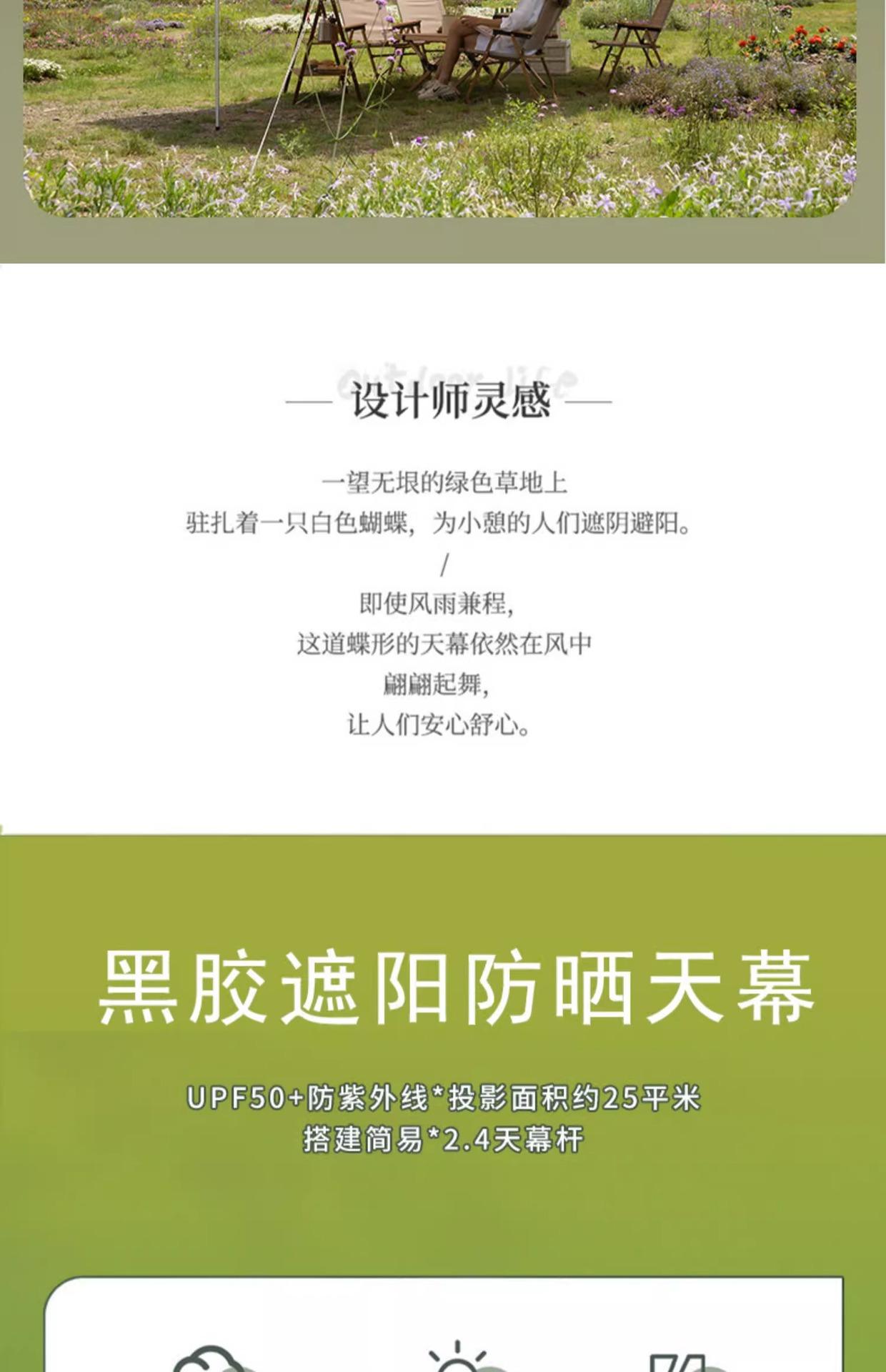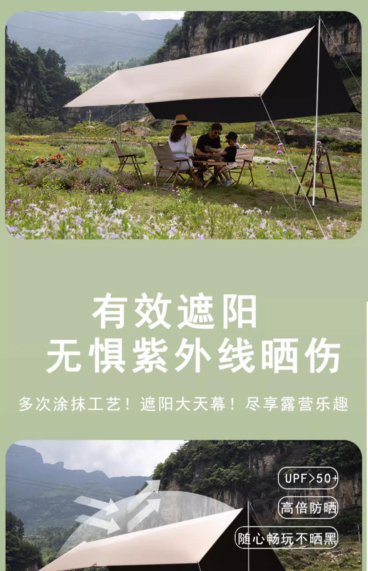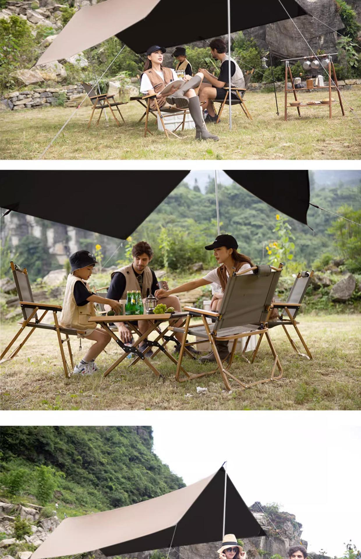 Tienda de campaña de goma negra para exteriores, parasol portátil con revestimiento de protección solar grueso y forma octogonal de mariposa.