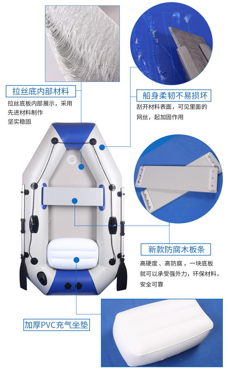 Barco de pesca inflable con red de clip, kayak, bote a la deriva con fondo de tira de madera