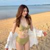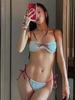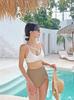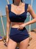 . [Multicolor] Nuevo bikini de tela con textura sexy de color sólido estilo ins, traje de baño dividido adelgazante de cintura alta para vacaciones para mujeres