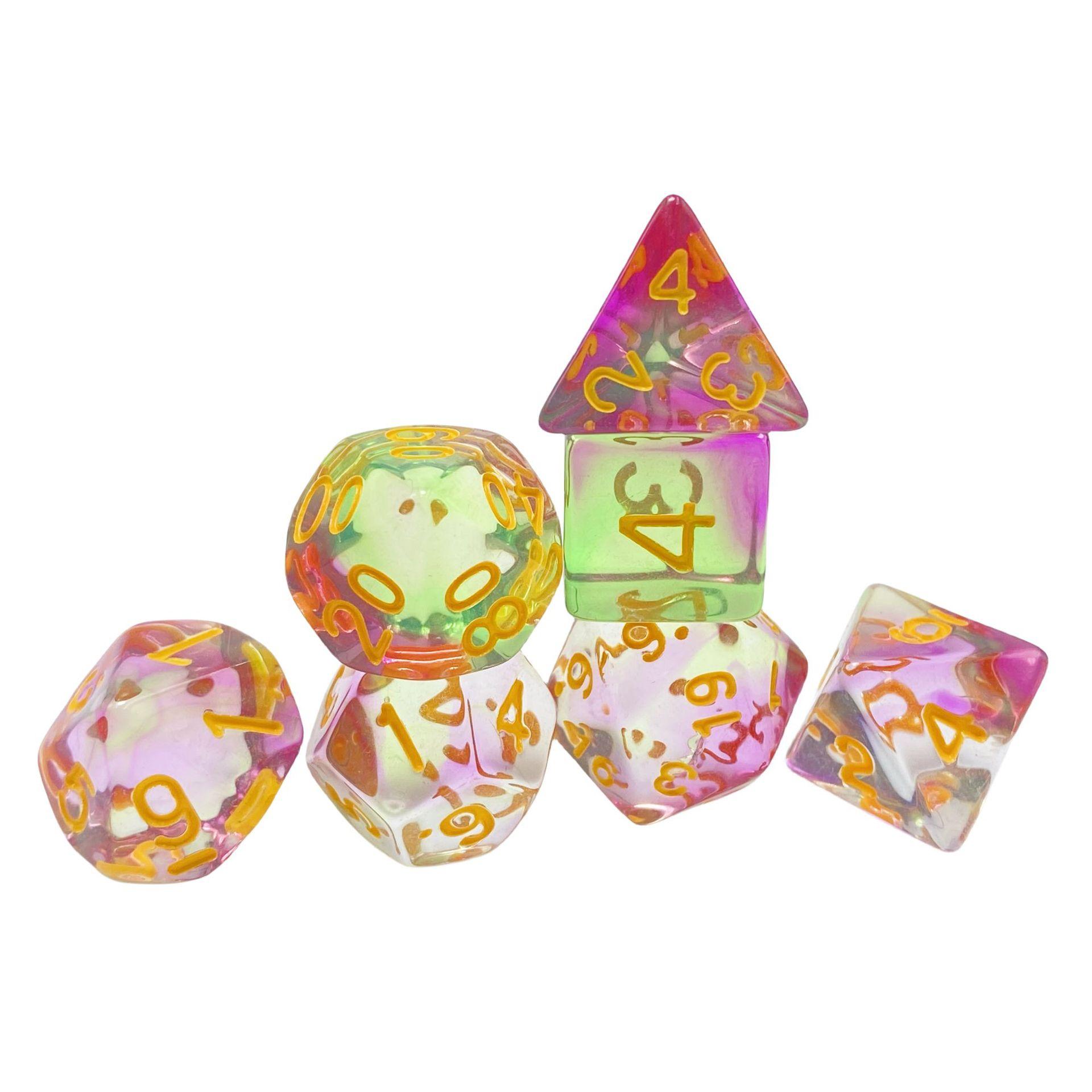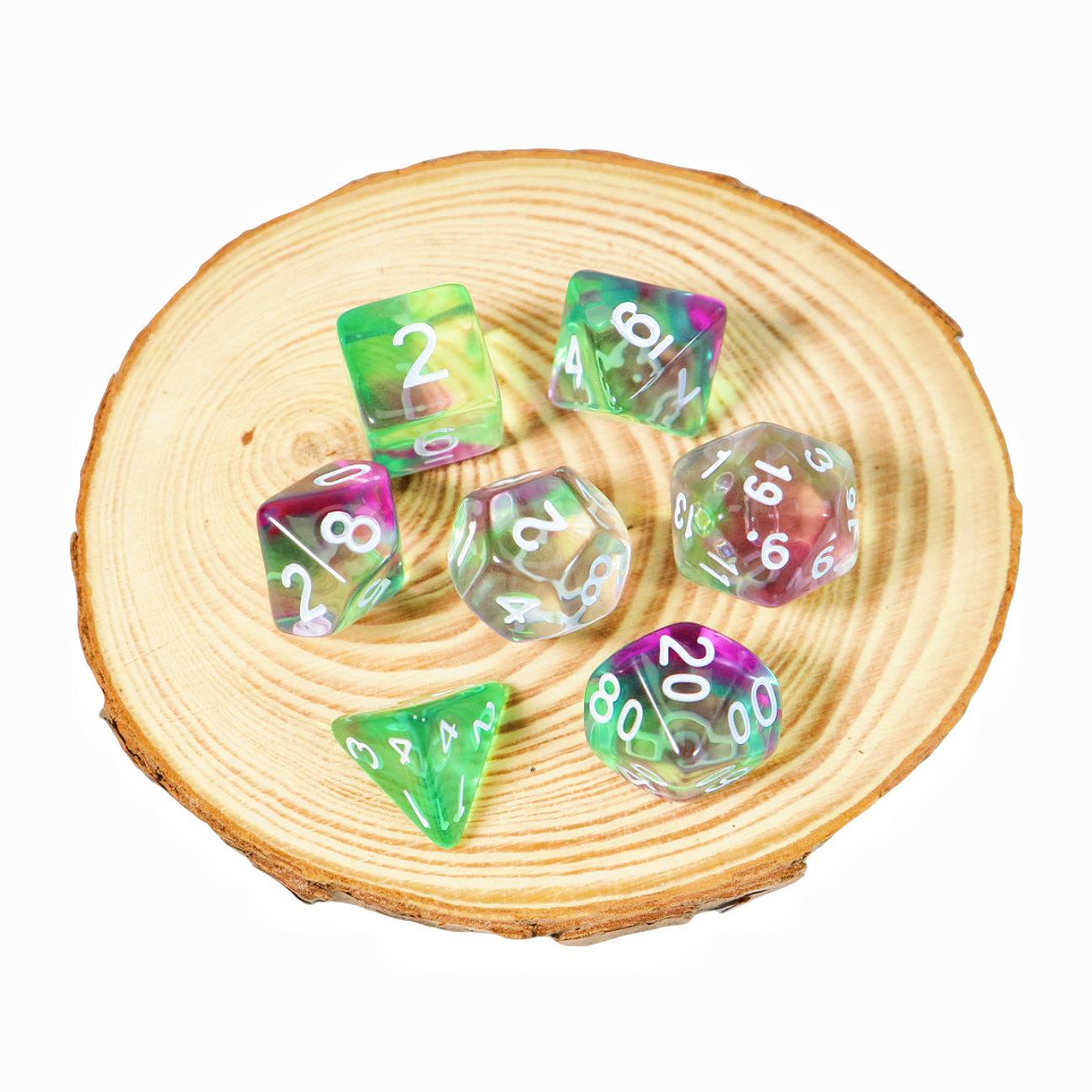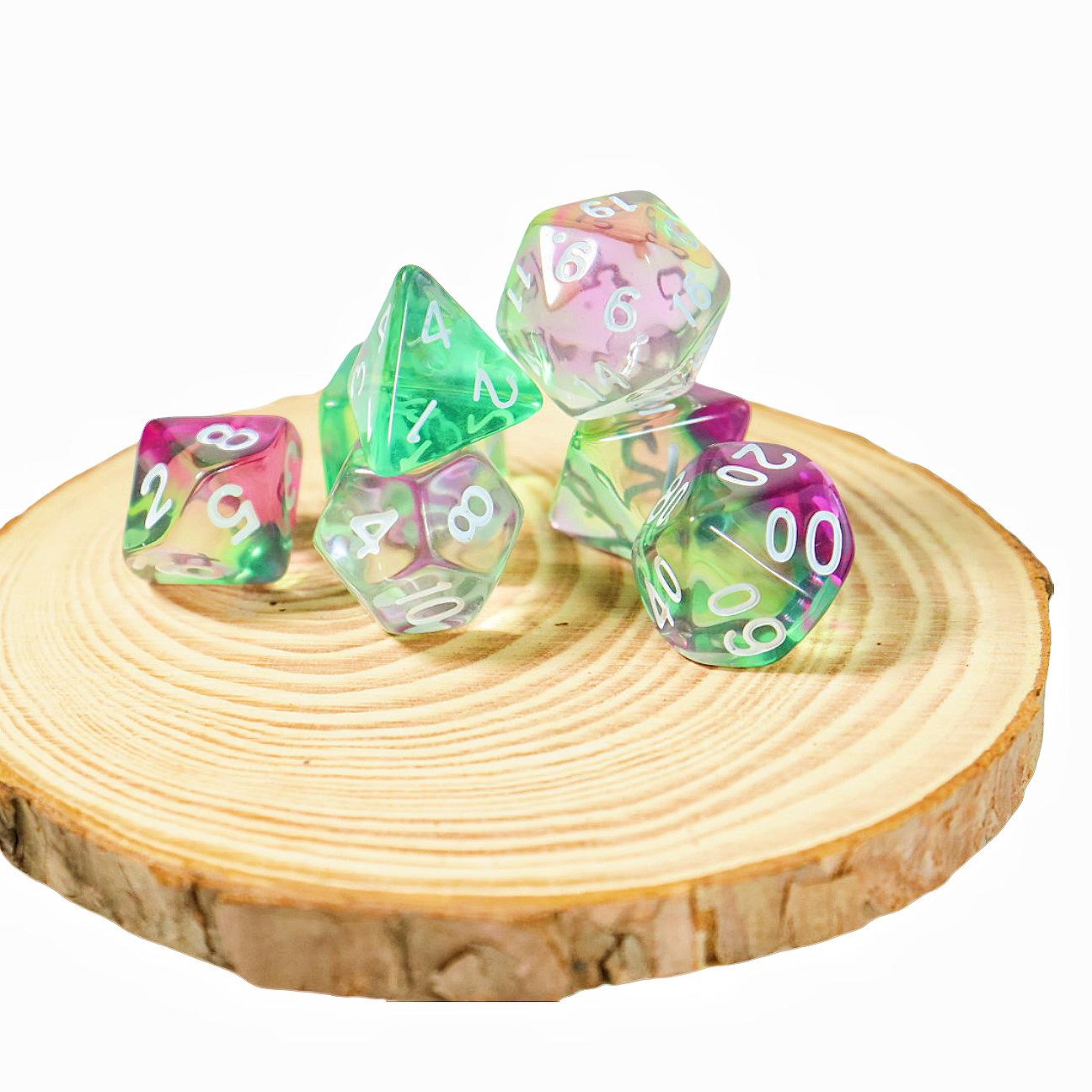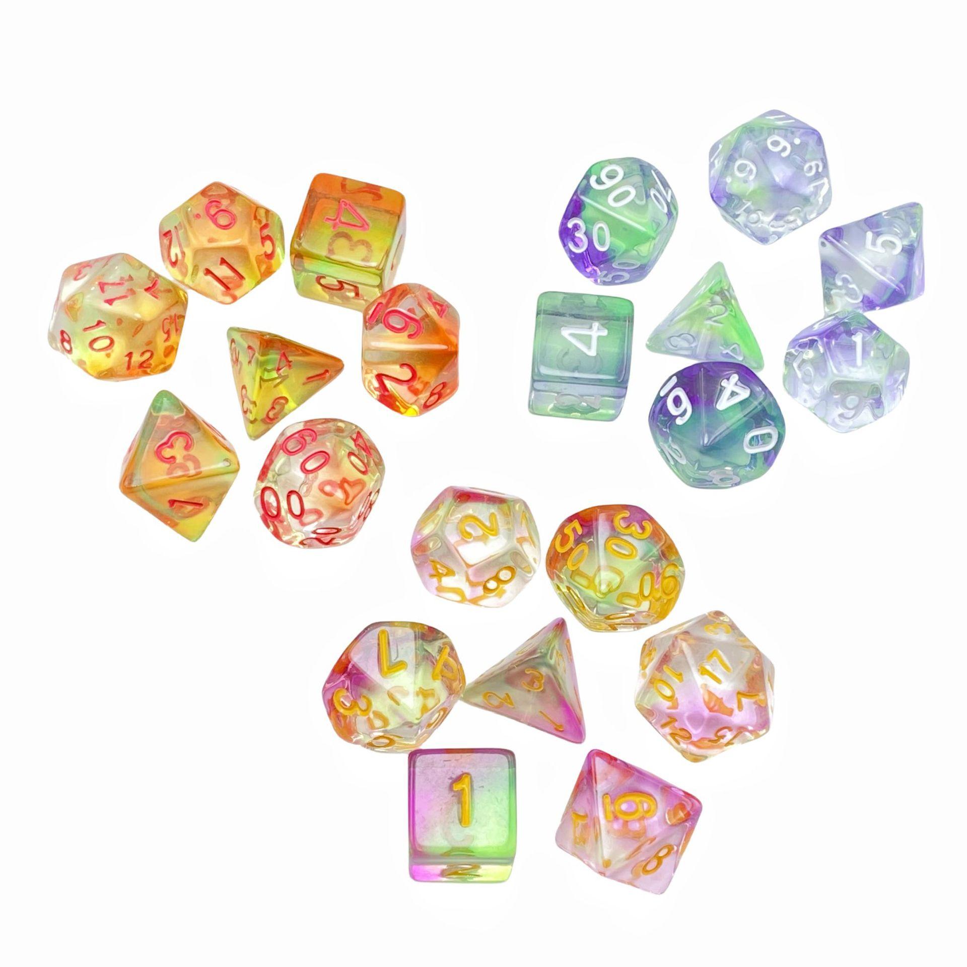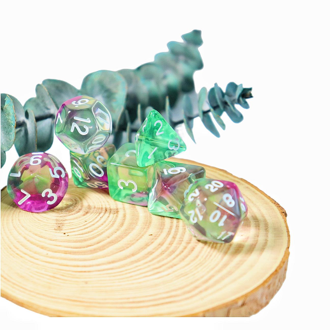Suministro directo de fábrica, juego de mesa multicara DND, transparente, de tres colores, acrílico, 7 dados, juego de dados de plástico.