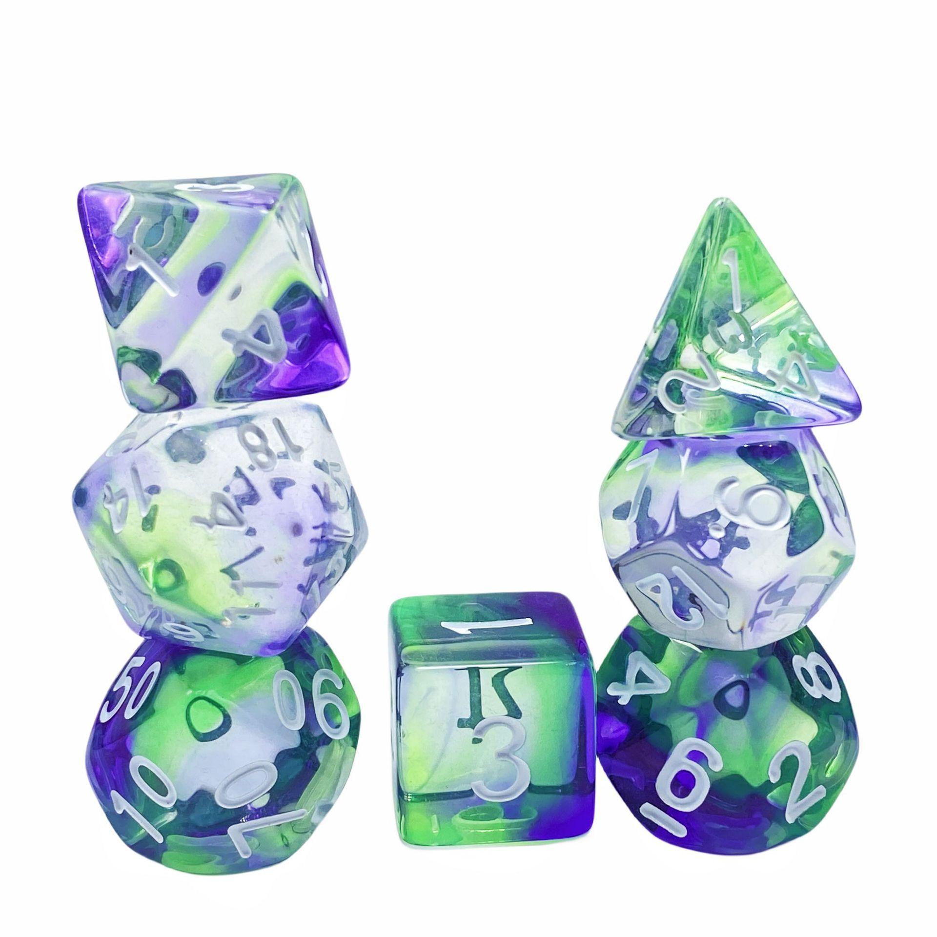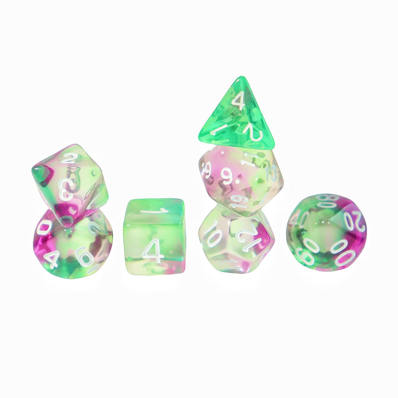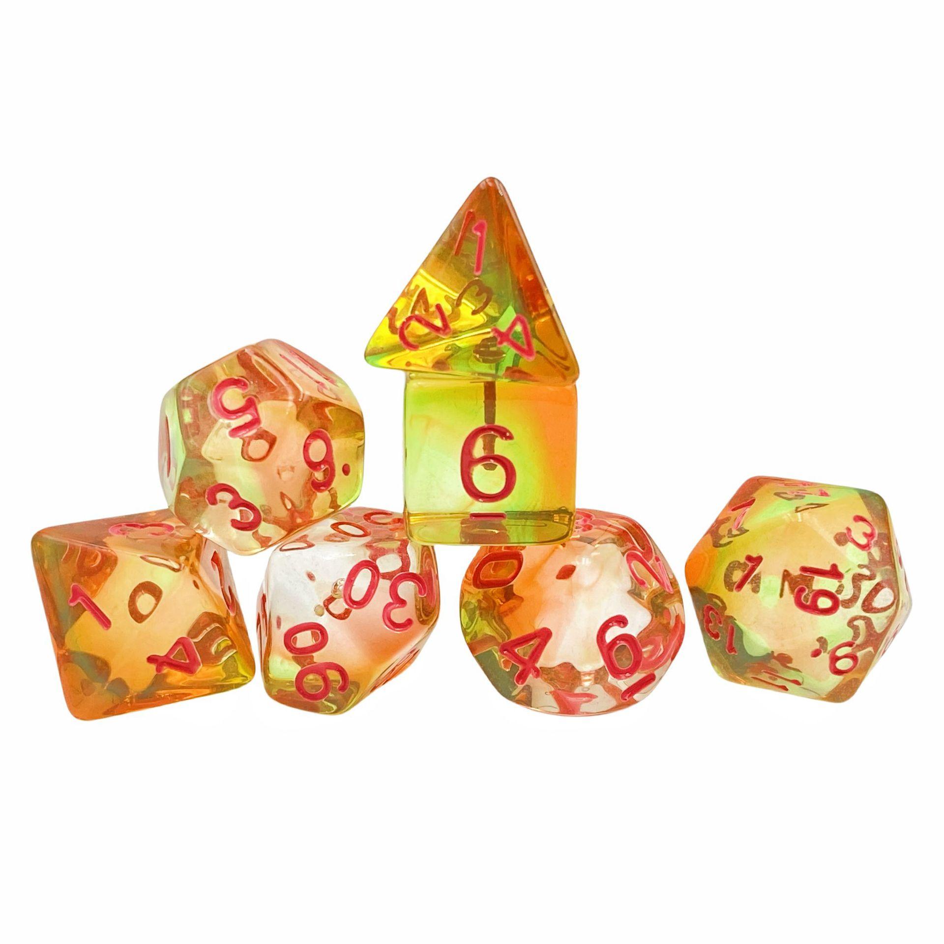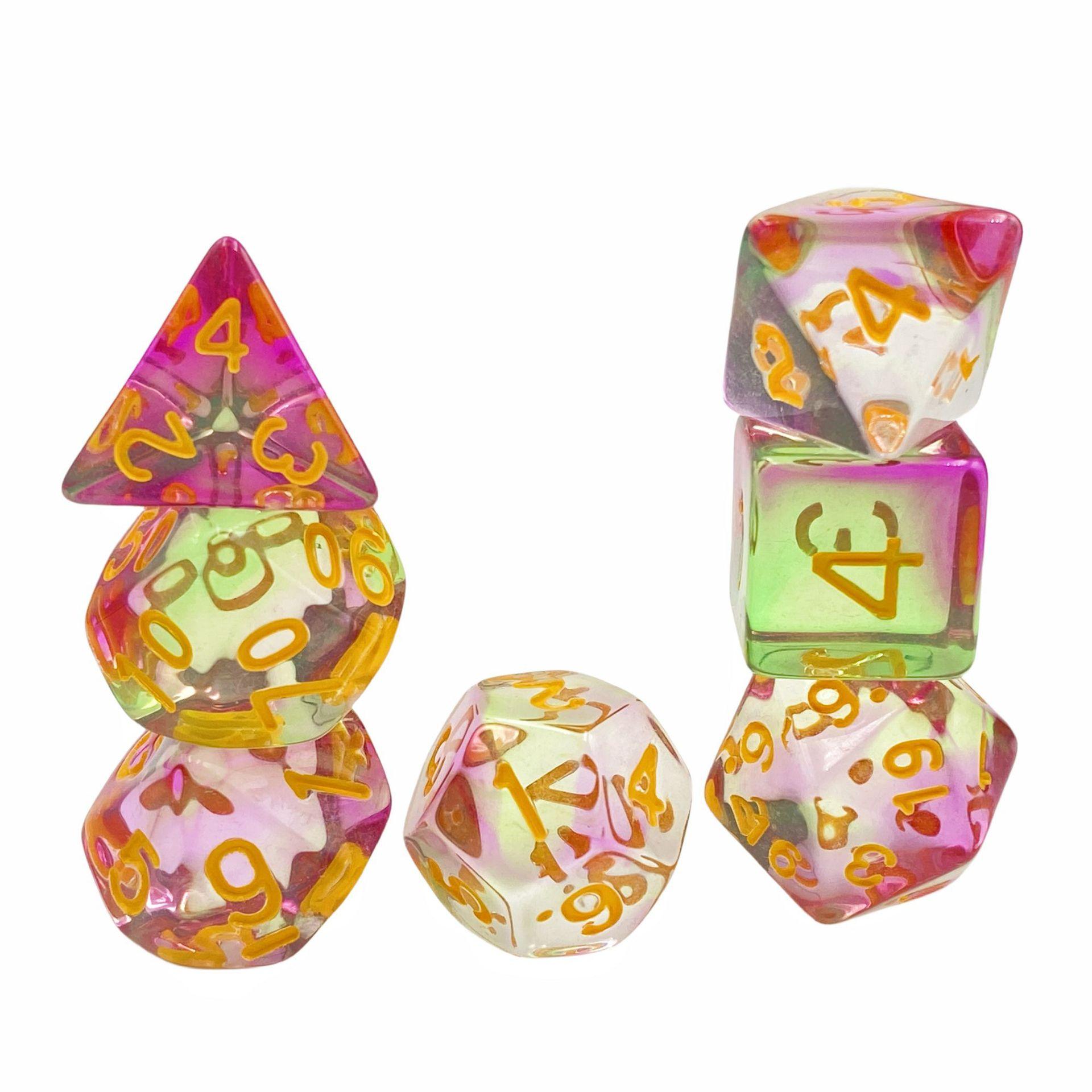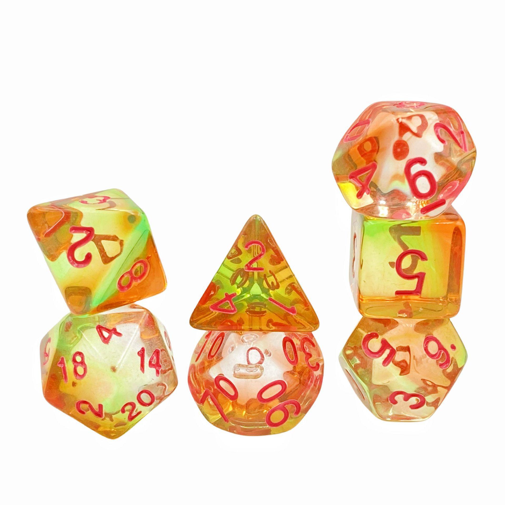 Suministro directo de fábrica, juego de mesa multicara DND, transparente, de tres colores, acrílico, 7 dados, juego de dados de plástico.