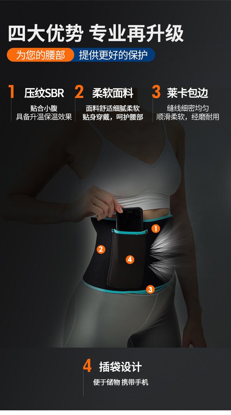 Cinturón de contracción abdominal, cinturón de compresión elástica, soporte de cintura, deportivo, fitness, bolsillo, protección contra el sudor, cinturón de soporte de cintura de color.