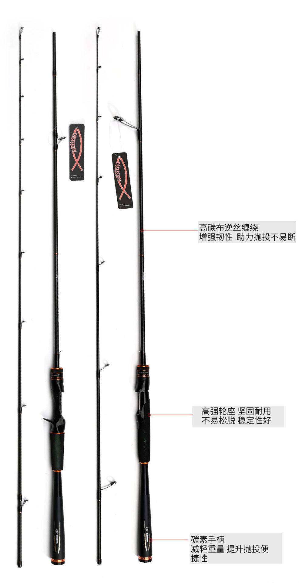 [Maldición Mágica] Nueva caña de casting para señuelos con empuñadura recta 1.98m 2.13m 2.28m caña de pescar negra boca de caballo