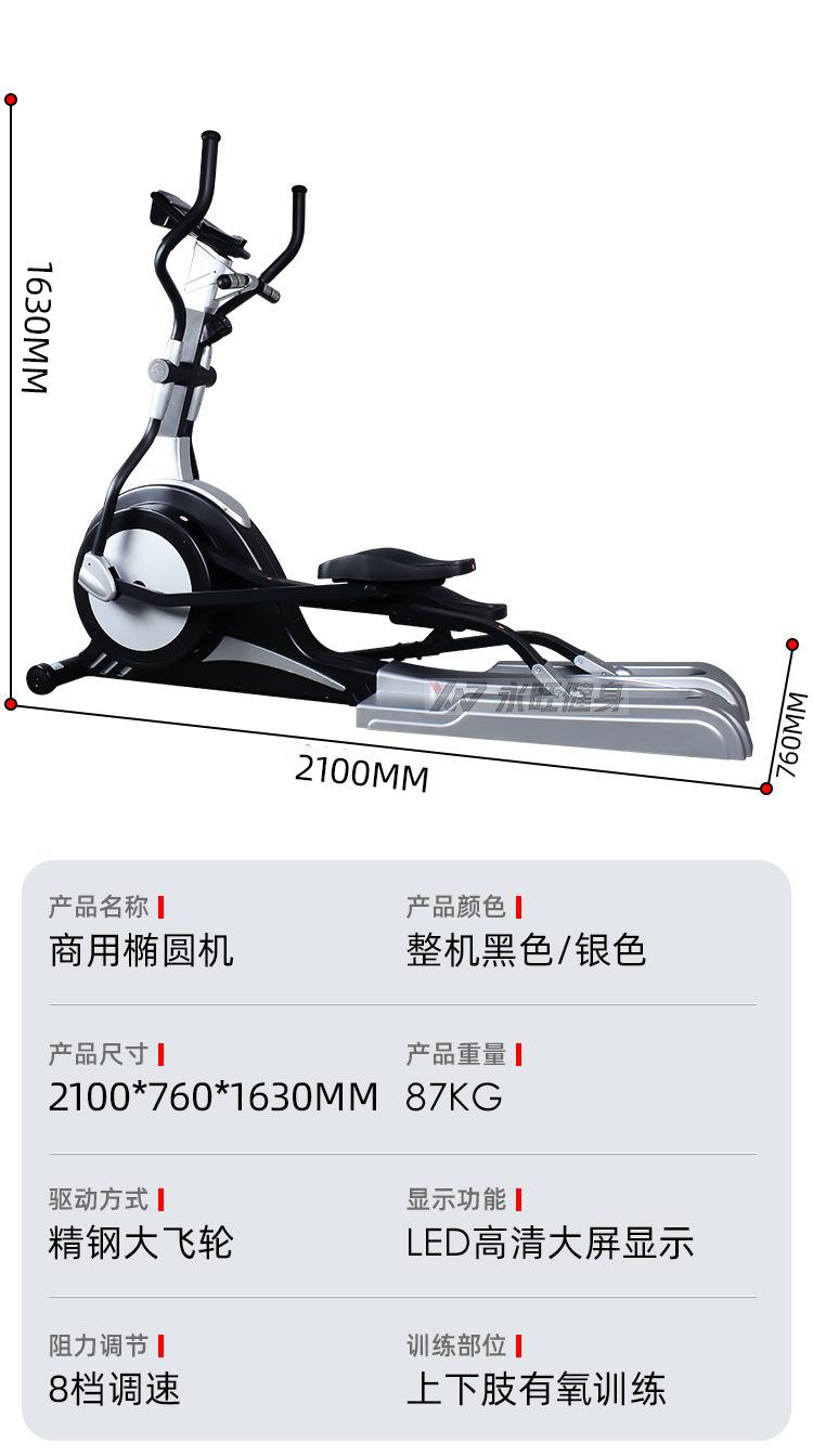 Gimnasio comercial, estudio de educación privada, máquina elíptica de alta gama, equipo deportivo.