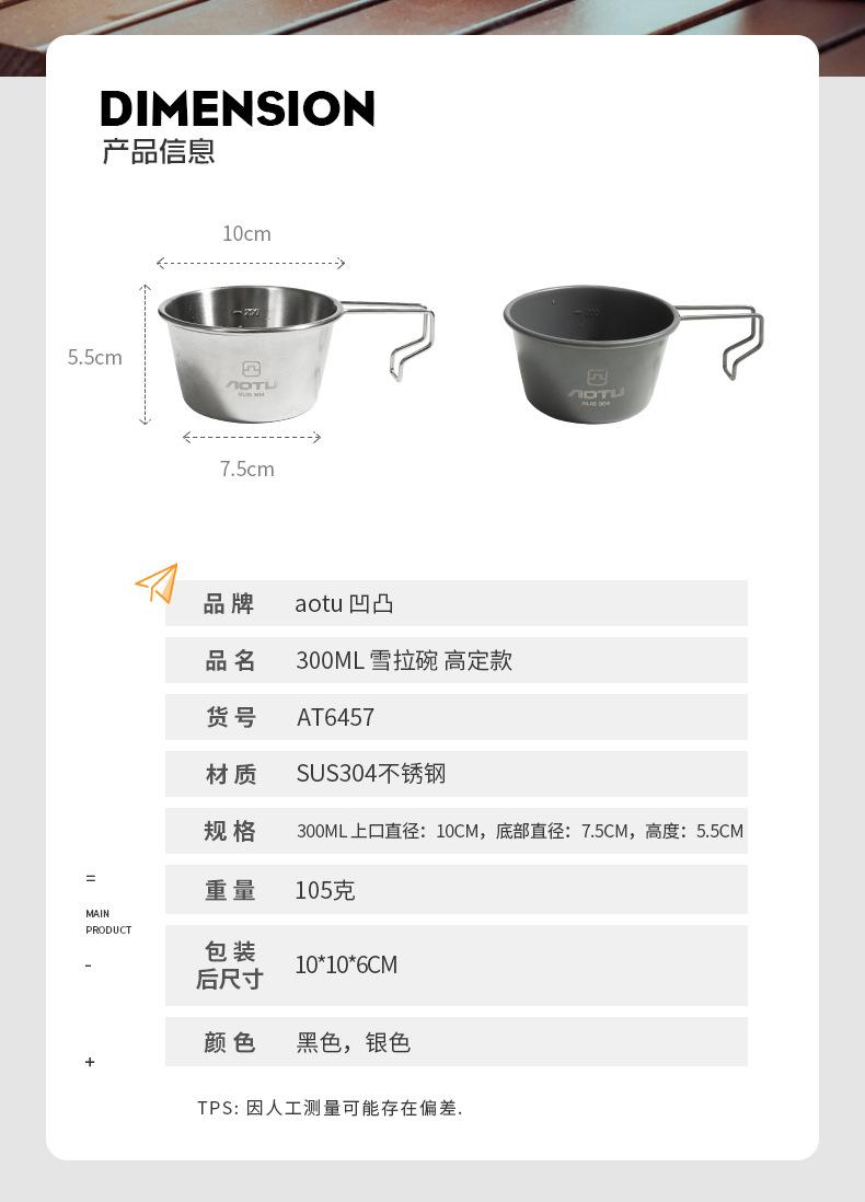 Especificación: 300ML Diámetro de apertura superior: 10CM, diámetro inferior: 7.5CM, altura: 5.5CM