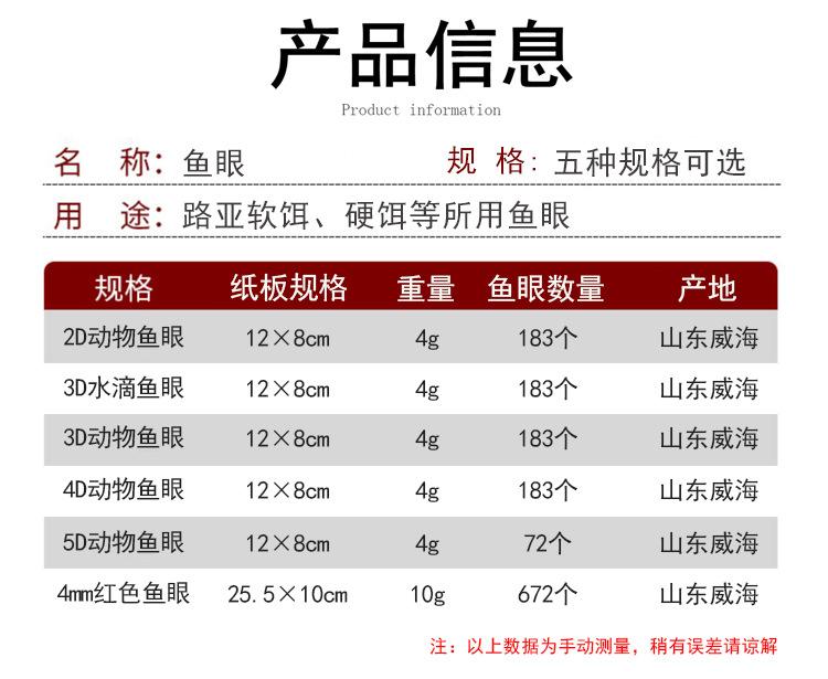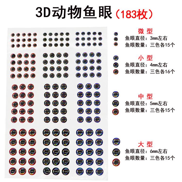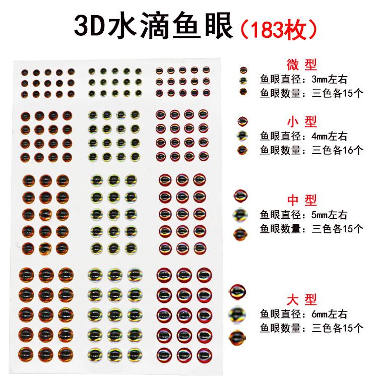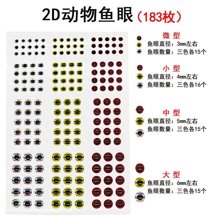 Fabricante Venta al por Mayor Accesorios de Equipo de Pesca 3D Gota de Agua Ojos de Cebo Falso Pegatinas 2D Señuelo Biónico Animal Ojo de Pez