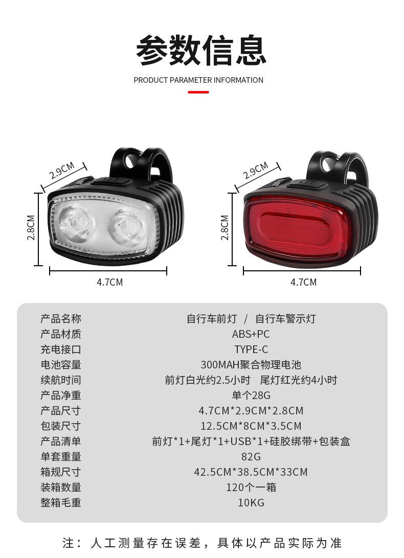 Juego de Luz Delantera y Trasera para Bicicleta Impermeable LED de Alto Brillo Luz de Advertencia para Carretera Accesorios para Ciclismo de Montaña