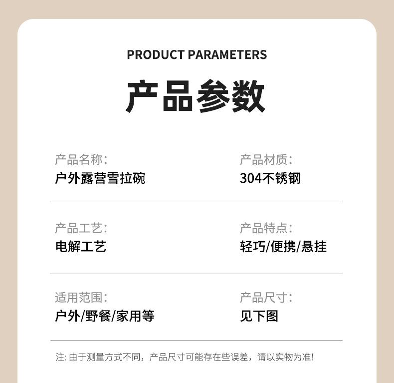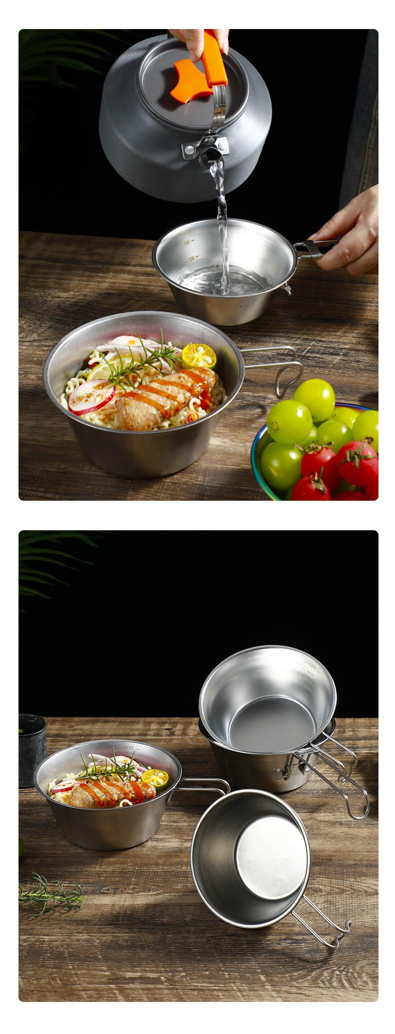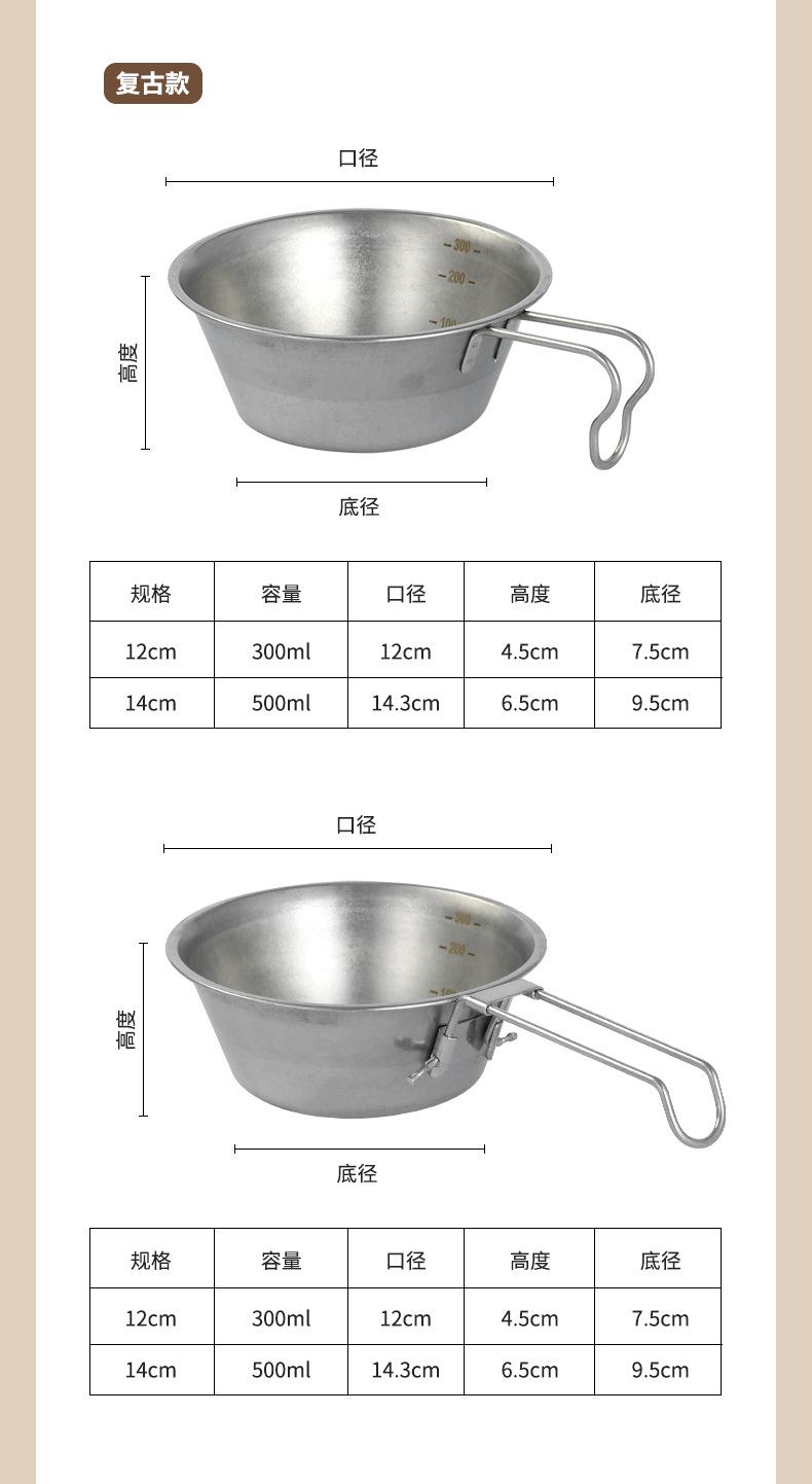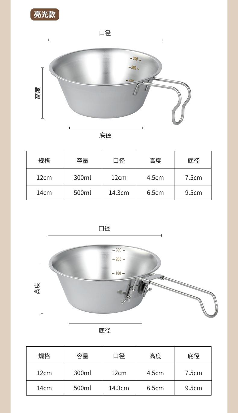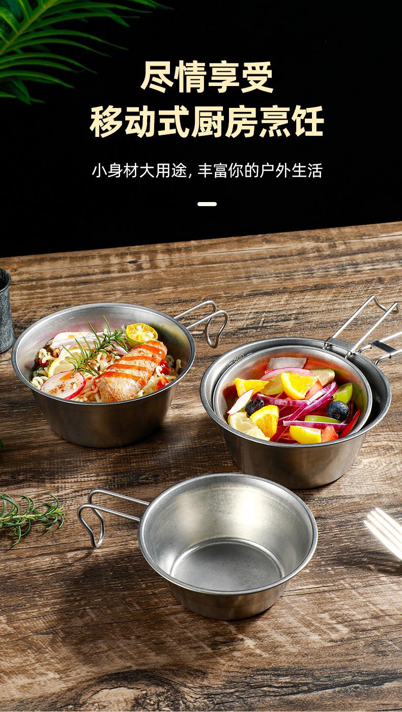 Acero inoxidable 304 camping al aire libre Tazón de nieve vajilla de picnic portátil tazón plegable ultraligero suministros de camping