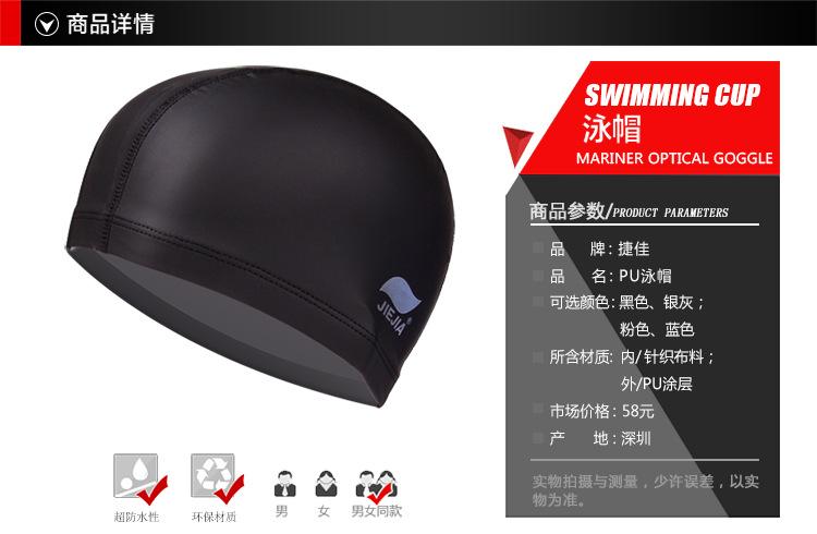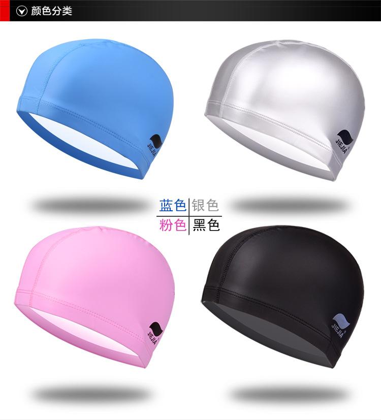 Gorro de Natación Jiejia Recubierto de PU Color Puro Impermeable Transpirable Venta al por Mayor Gorro de Natación para Mujer Impermeable No Elástico Adulto Tela Gorro de Natación
