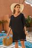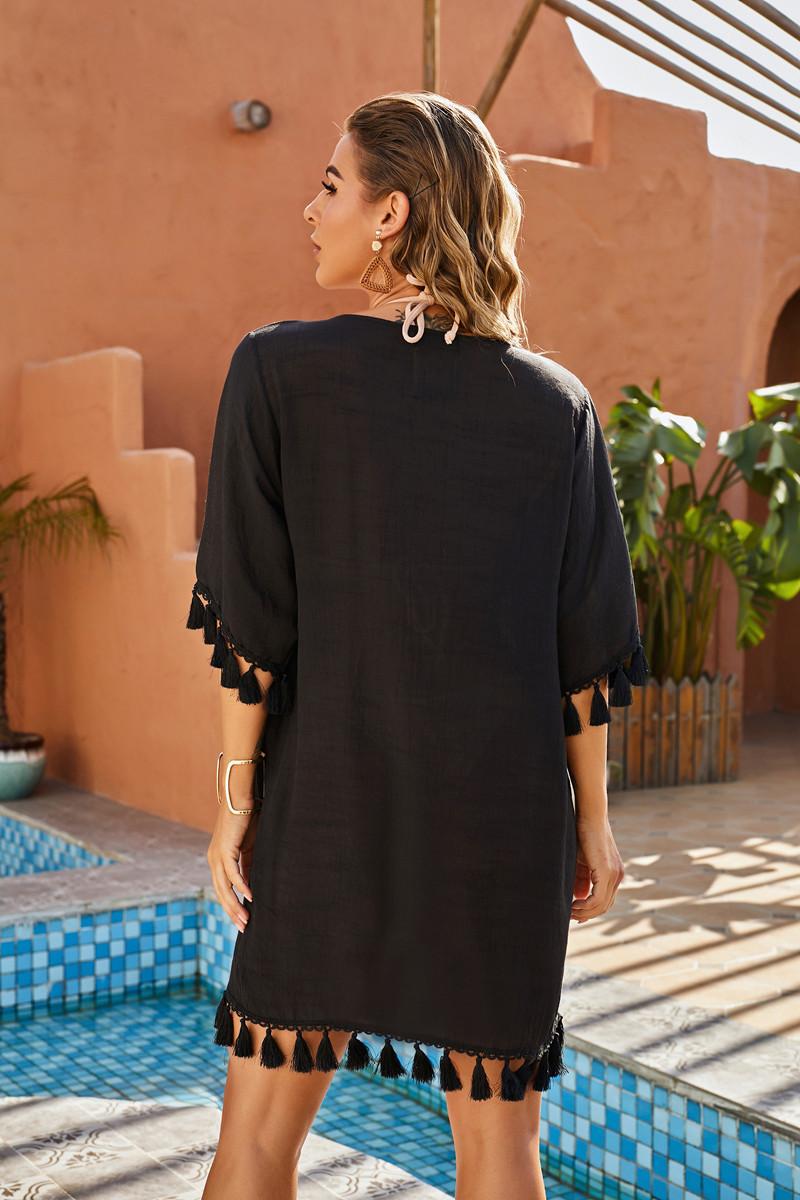Transfronterizo Nuevo Europeo y Americano para Mujer Tejido Protector Solar Cuello Redondo Flecos Bikini Traje de Baño Exterior Falda de Playa Directo de Fábrica