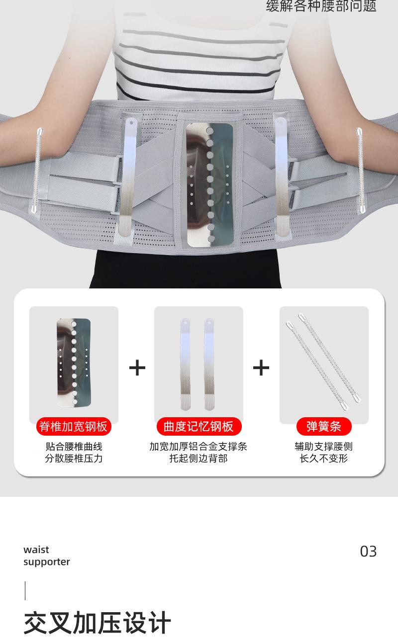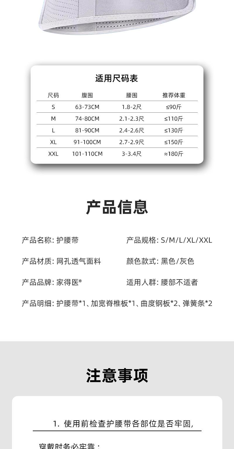 Wide steel plate waist protector black + three gaskets, Wide steel plate waist protector gray + three gaskets