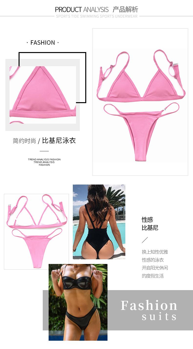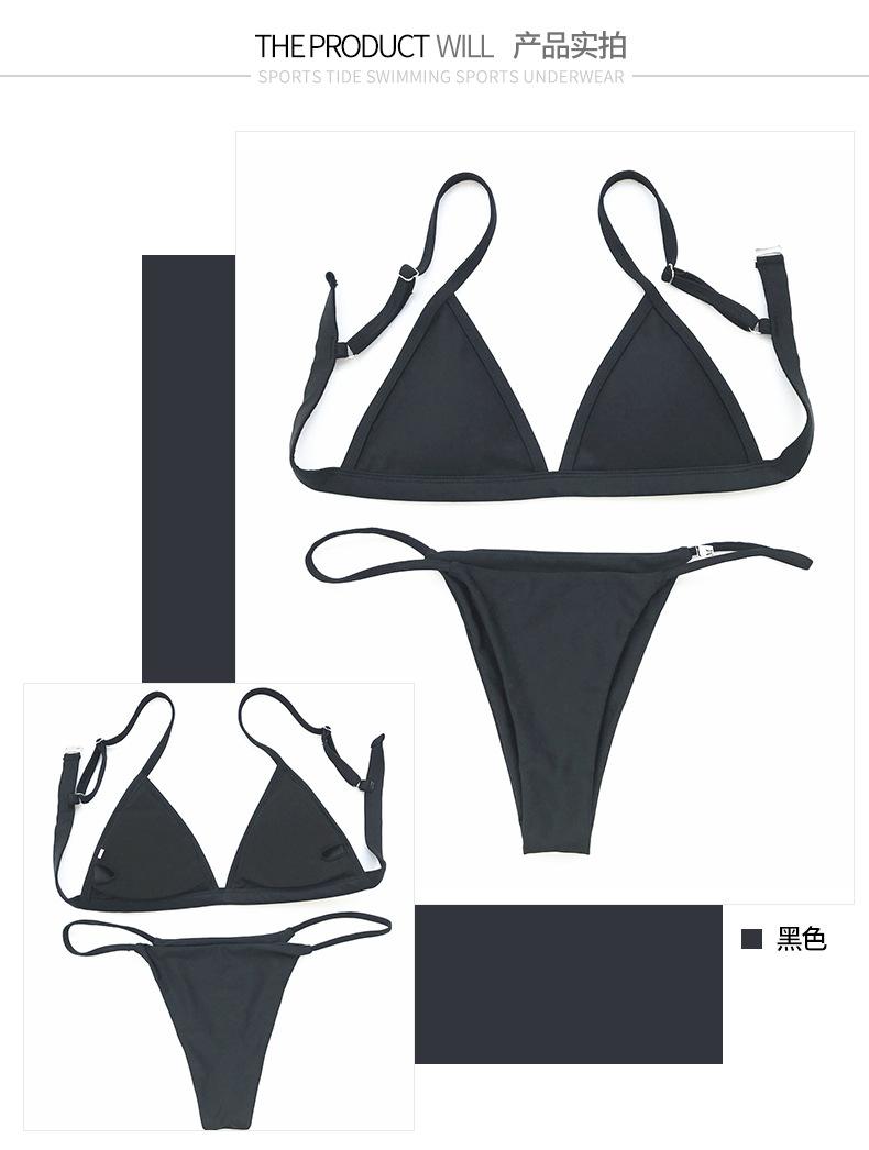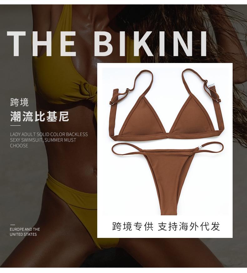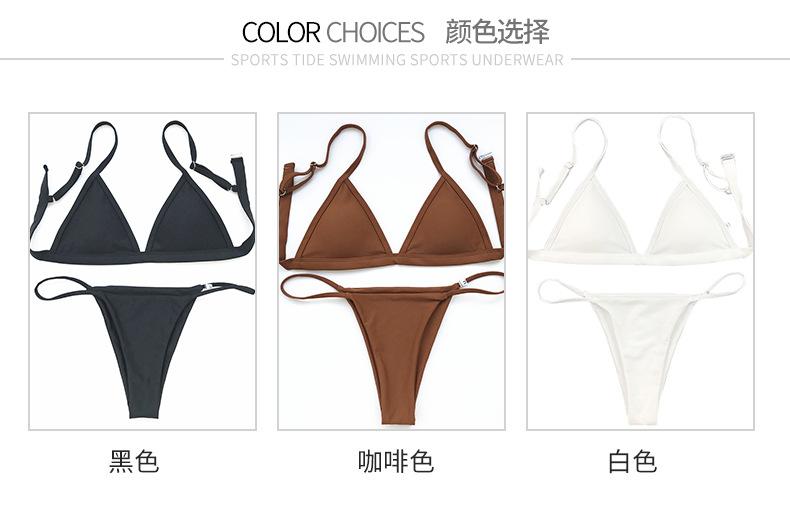 Bikini Deportivo de Moda Dividido Transfronterizo Europeo y Americano Sexy Color Sólido Traje de Baño para Mujer Estilo Dividido Secado Rápido