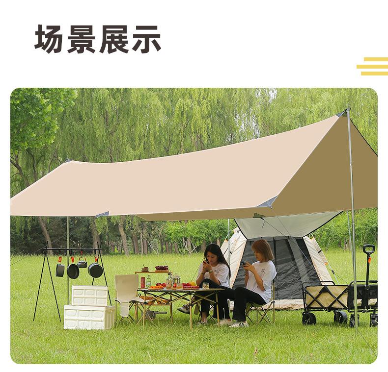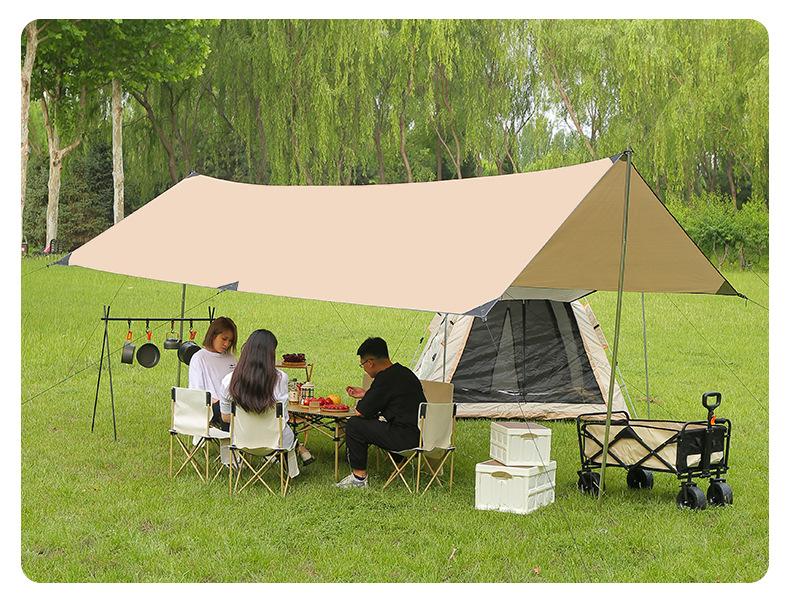 Tienda de campaña con dosel para exteriores, parasol, protector solar, toldo impermeable, equipo de camping, cortina plateada revestida