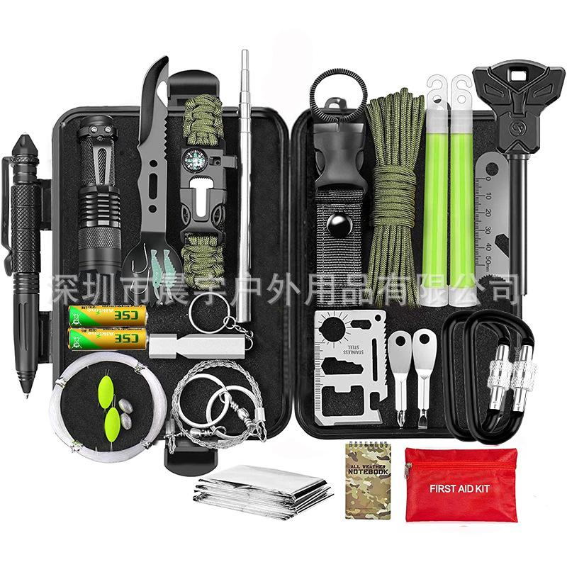 Equipo para exteriores, acampada, supervivencia, caja del tesoro, traje de herramientas, supervivencia al aire libre, suministros de emergencia multifuncionales, caja de primeros auxilios