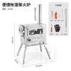Tienda de campaña estilo camping al aire libre Estufa de vidrio Estilo camping Fuego de carbón Acero inoxidable Portátil Plegable Dividido Horno de calentamiento