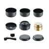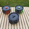 Lista: olla grande * 1, tetera * 1, sartén * 1, taza * 2, mosquetón D * 1, juego de cubiertos de tres piezas * 1, hornillo mini * 1