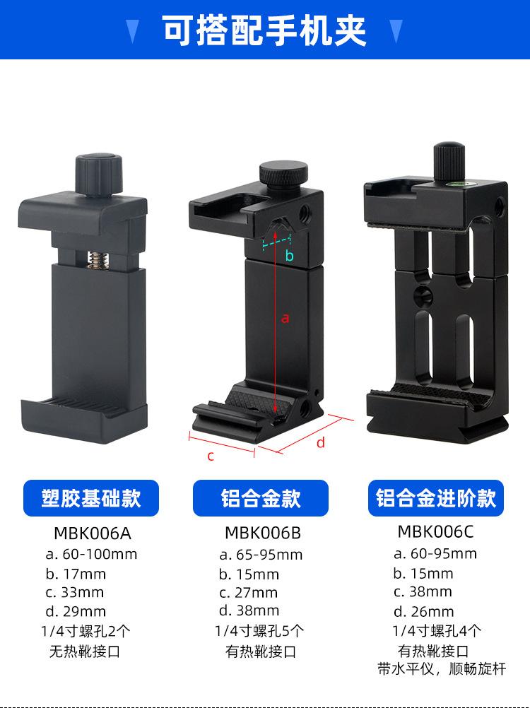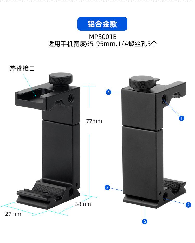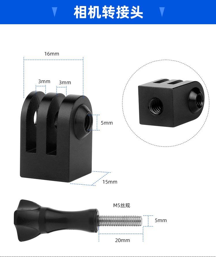 Front camera rack [applicable to 1/4 ports] + GoPro port connector + aluminum alloy mobile phone clip M06B
