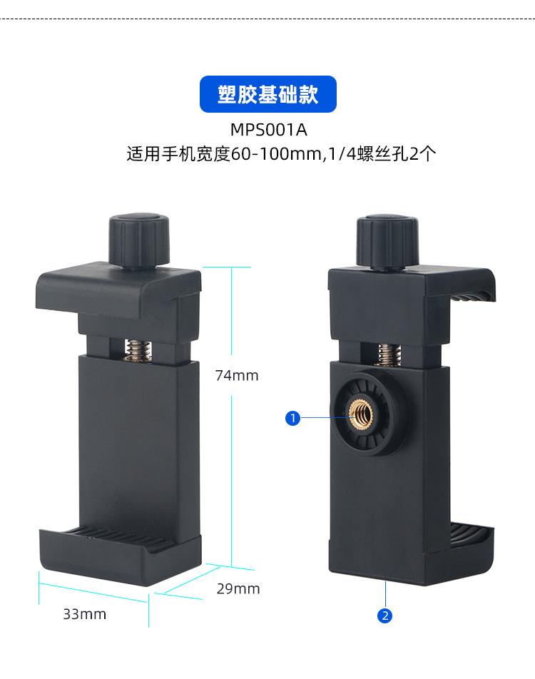 Front camera rack [applicable to 1/4 ports] + GoPro port connector + plastic mobile phone clip M06A