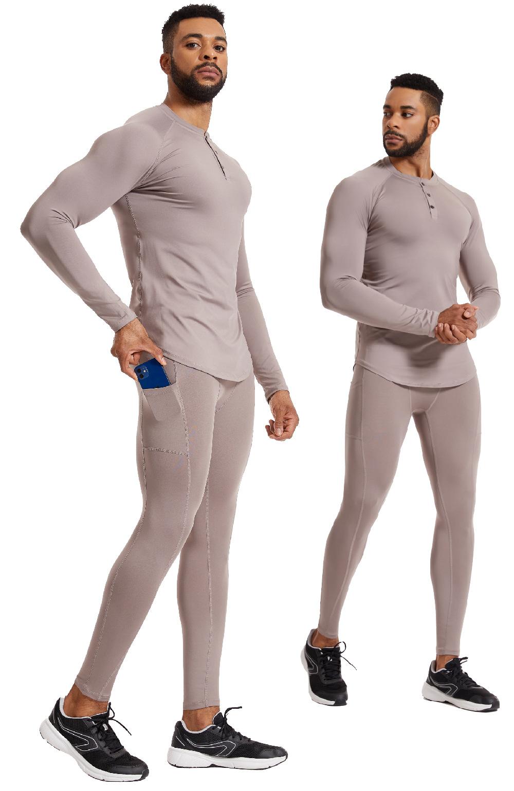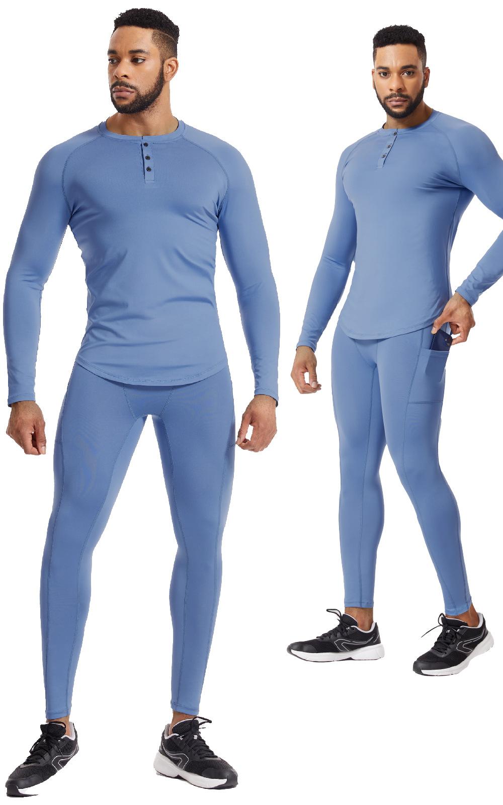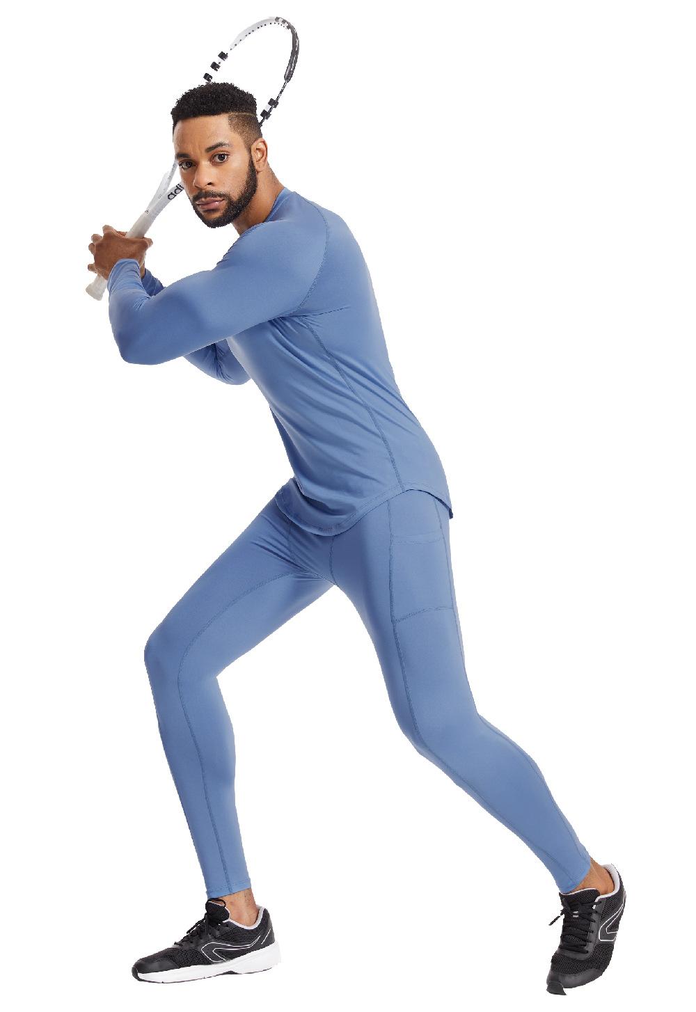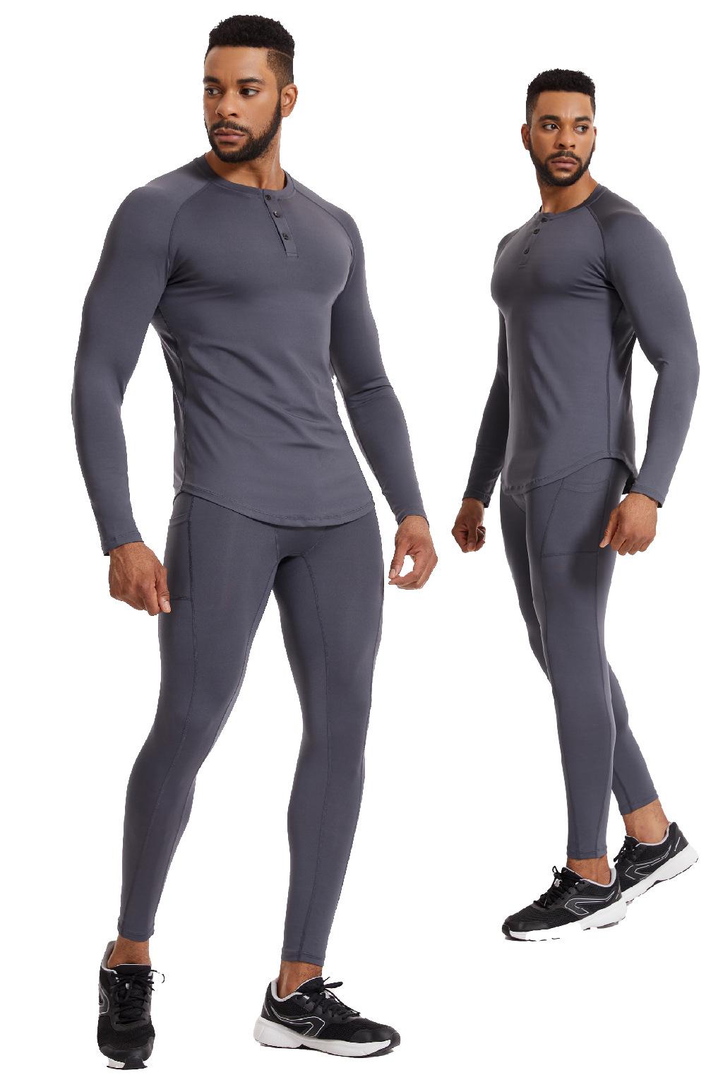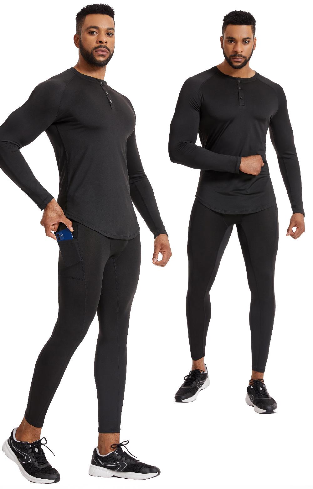 Conjunto de Ropa Deportiva Transfronteriza para Hombre, Otoño e Invierno, Top de Alta Elasticidad de Secado Rápido y Ajuste Ceñido, Traje Deportivo de Capa Base para Baloncesto que Absorbe el Sudor