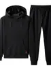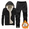 Traje casual de otoño e invierno para hombre, chaqueta deportiva gruesa con forro polar, abrigo y pantalones de dos piezas, venta al por mayor