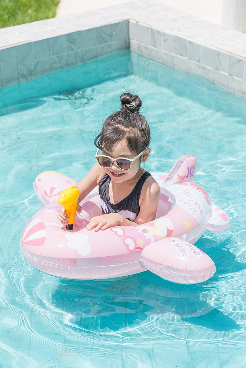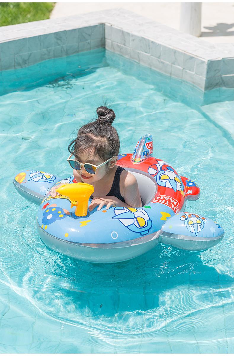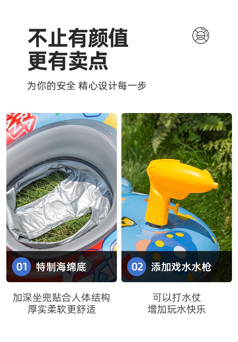 Flotador infantil con fondo inflable, con pistola de agua, asiento de anillo para bote, rociador de agua, anillo de natación, anillo de asiento de axila infantil de dibujos animados para bebé