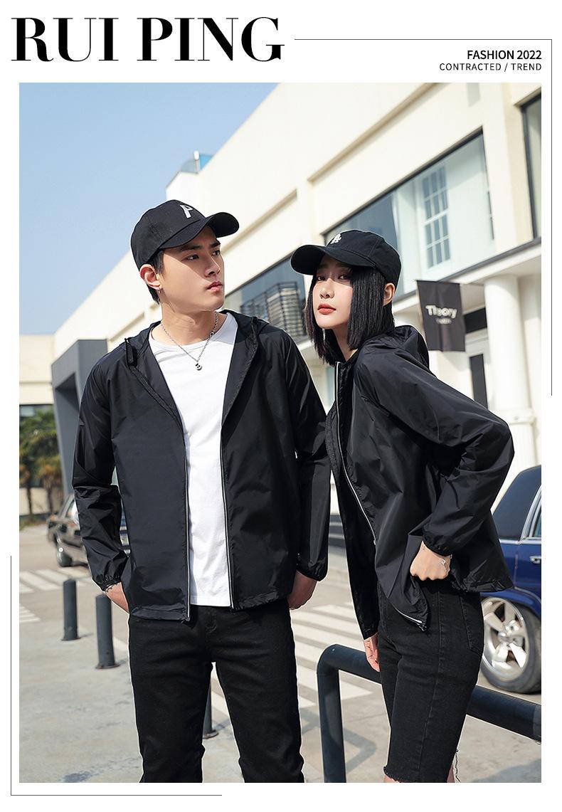 Rompevientos de Manga Larga para Otoño e Invierno para Hombre y Mujer, Abrigo para Adulto de Color Sólido con Capucha y Cierre de Cremallera de Secado Rápido, Protección UV, Ocio al Aire Libre
