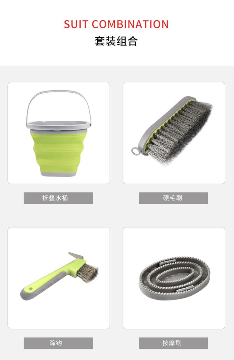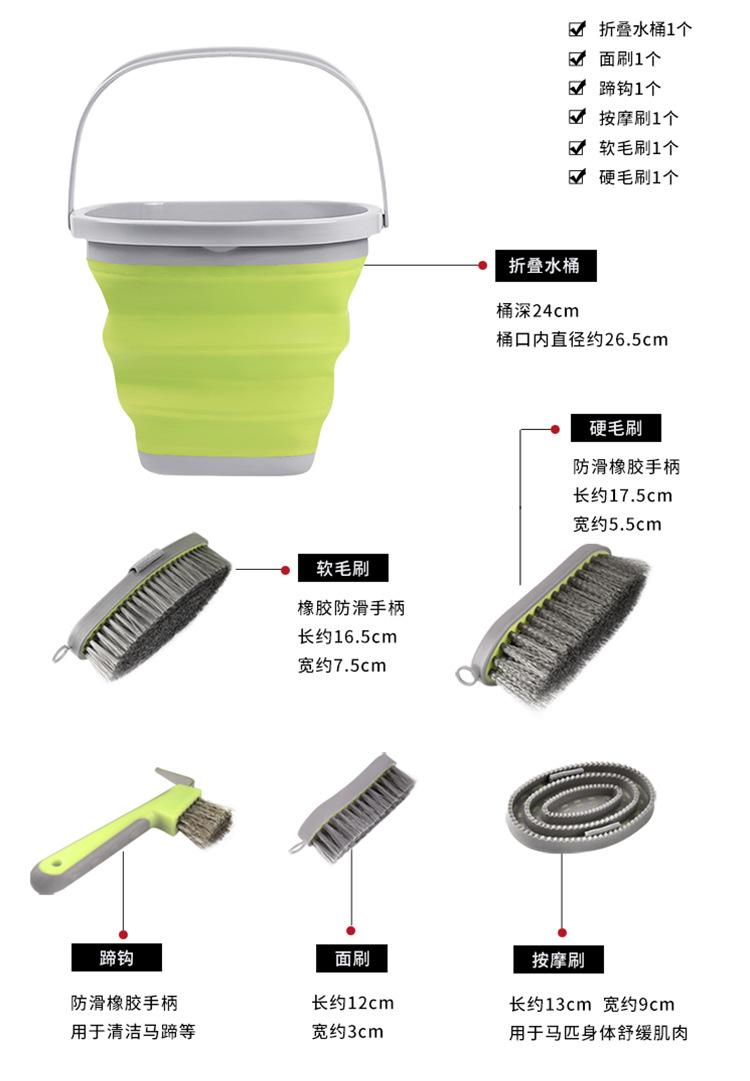 Cubo plegable para limpieza transfronteriza de caballos, gancho para herraduras, cepillo facial para caballos, cepillo de masaje, cepillo suave, cepillo duro, suministros de limpieza para caballos