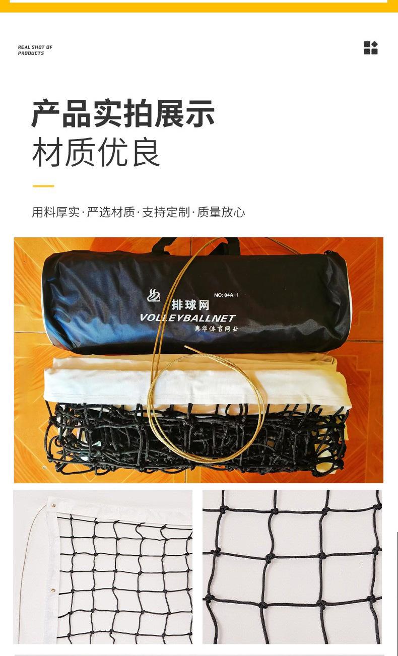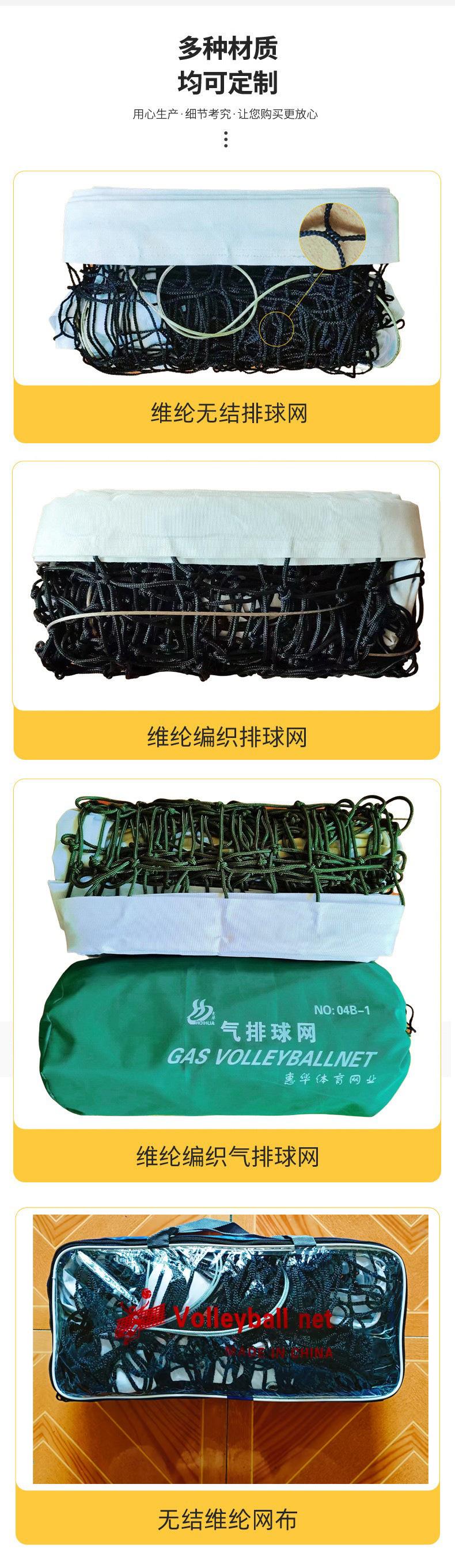 Native PE knotted volleyball net, Vinylon woven knotless volleyball net (weighted + galvanized steel wire), Vi...