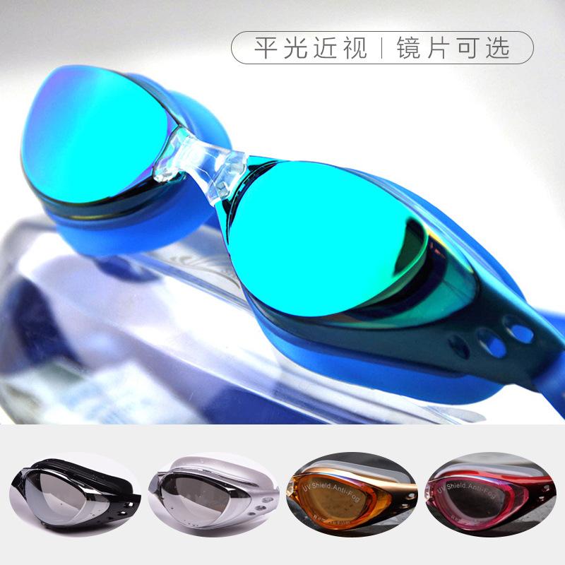 Gafas de natación para miopía, galvanizadas, impermeables, antivaho, para adultos, unisex, con montura grande, ajustables, selección multicolor