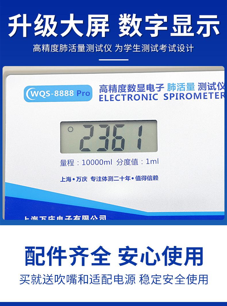 Probador electrónico de capacidad pulmonar Wanqing 8888, instrumento de medición con boquilla para examen físico escolar para estudiantes, ejercitador de alta precisión