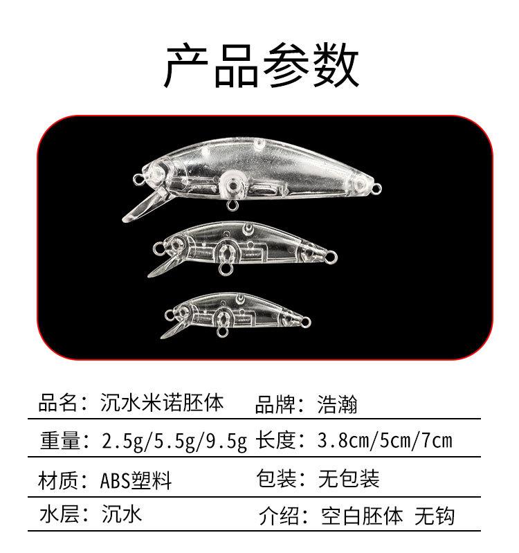 Cebo biónico mino al por mayor, cebo falso de luya sumergido para pesca en agua dulce, cebo duro de plástico embrionario en blanco.