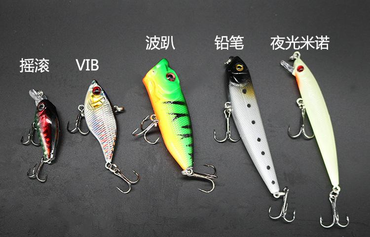 Características del producto: Se recopilan una variedad de señuelos en una caja, adecuados para la pesca en agua dulce y agua salada, y la caja se puede usar varias veces.
