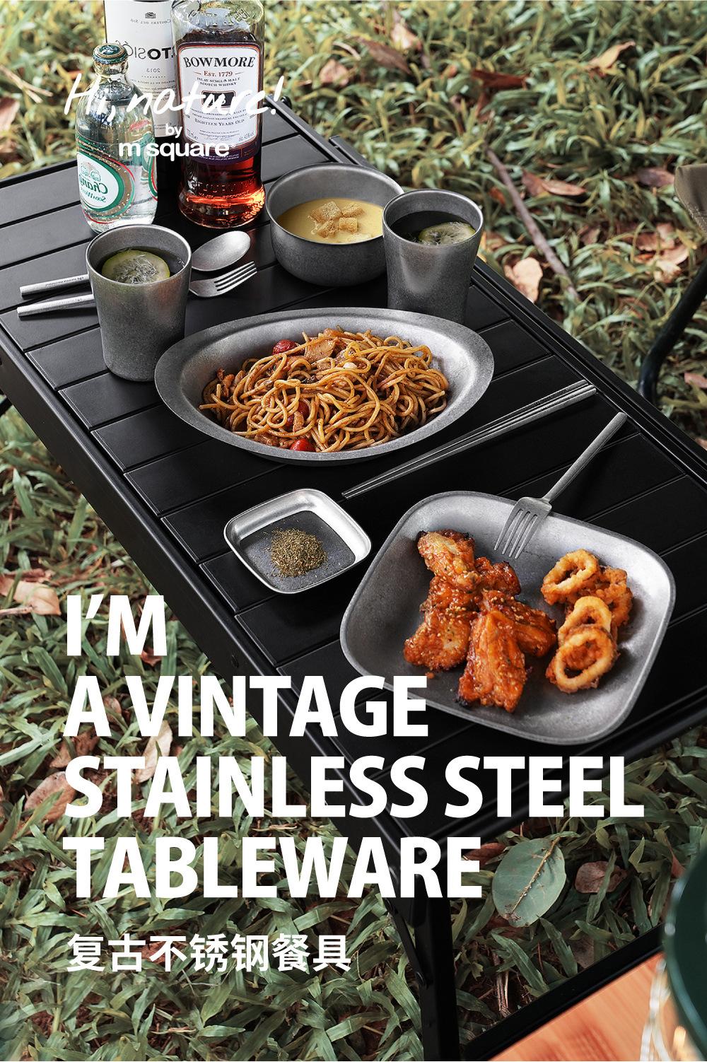 Round Single-Layer Snack Bowl, Double layer anti-scald Cup, Square Sauce Dish, Fork, Chopsticks, Spoon, Retro ...