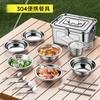 Juego de cuencos para acampar al aire libre cuadrados m, vajilla portátil de acero inoxidable 304, cuenco para nieve, vajilla para picnic, juego de cuencos y palillos