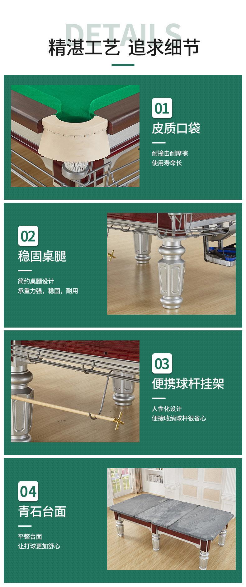 Mesa de Billar Estándar Comercial Estilo Americano Club Uso Doméstico Negra Mesa de Billar de Bola Ocho para Salas de Billar