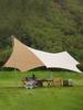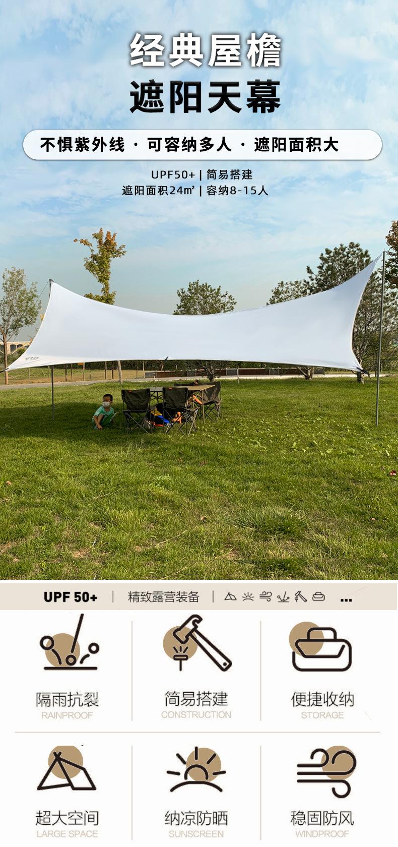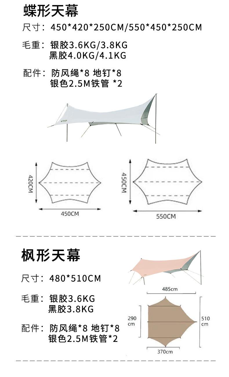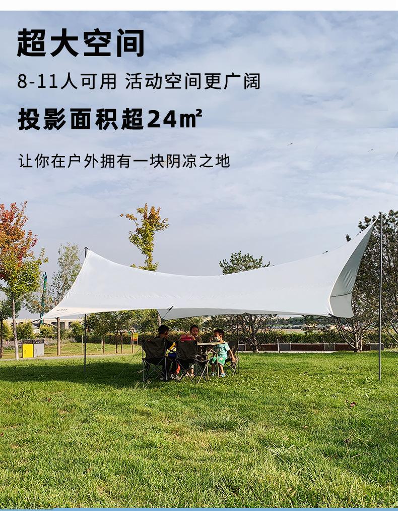 Tienda de campaña portátil para exteriores con dosel, recubierta de plata, resistente a la lluvia y al sol, con forma de mariposa, hexagonal y pegamento negro.