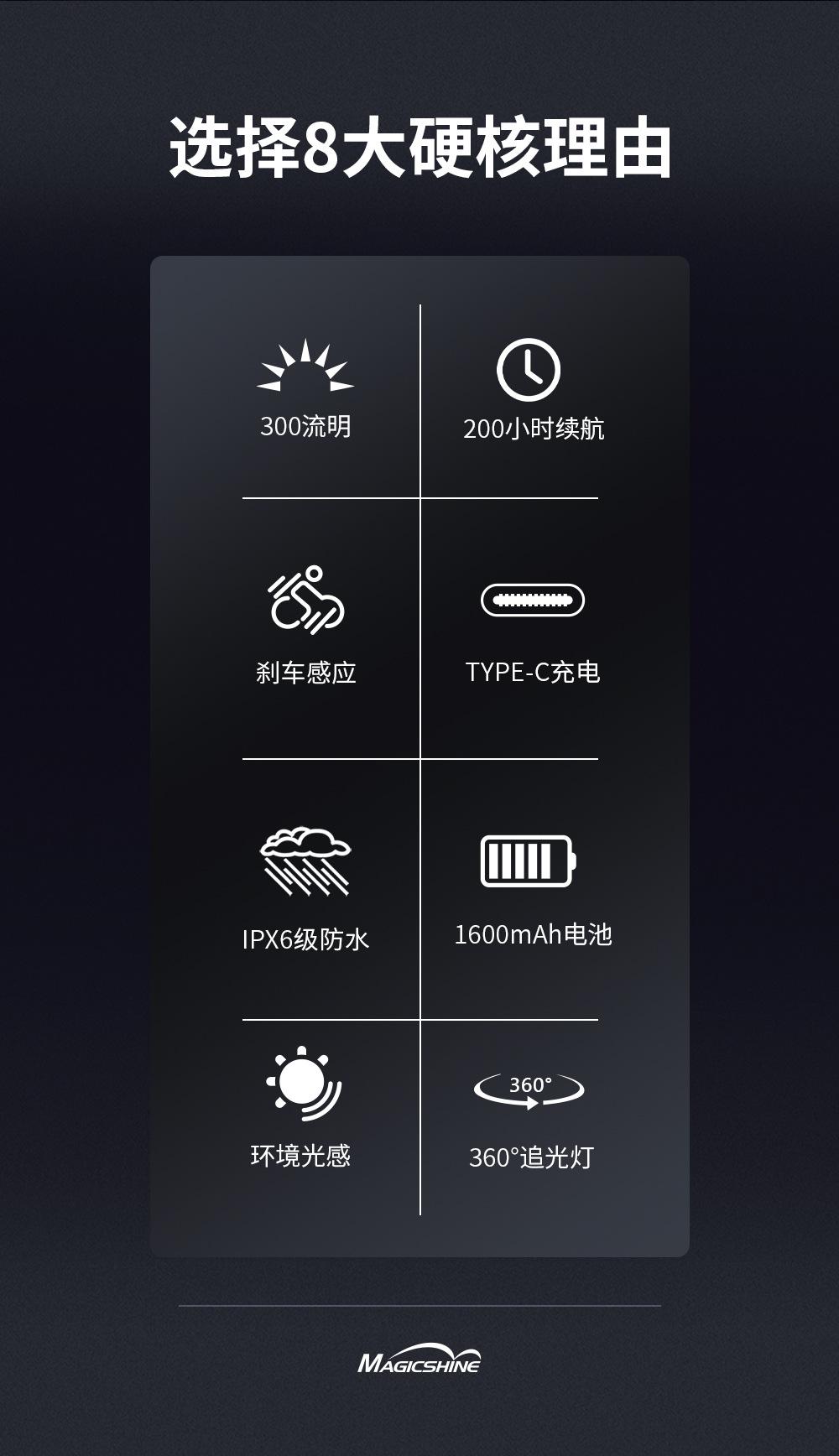 MAGICSHINE Mai Jixuan Luz Trasera de Bicicleta Advertencia para Ciclismo Nocturno Luz de Ciclismo Inducción de Freno SEEMEE 300