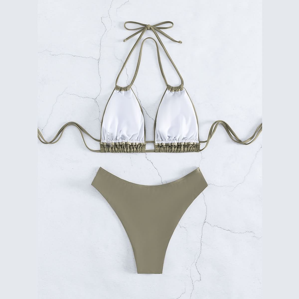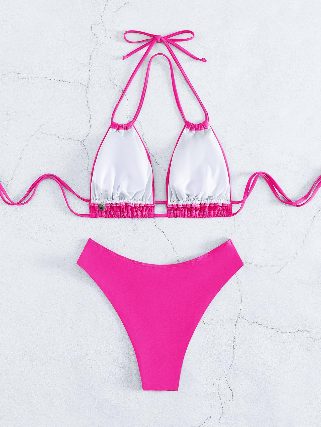 Bikini nuevo traje de baño sexy cuello de bikini para mujer traje de baño dividido color sólido trajes de baño europeos y americanos al por mayor