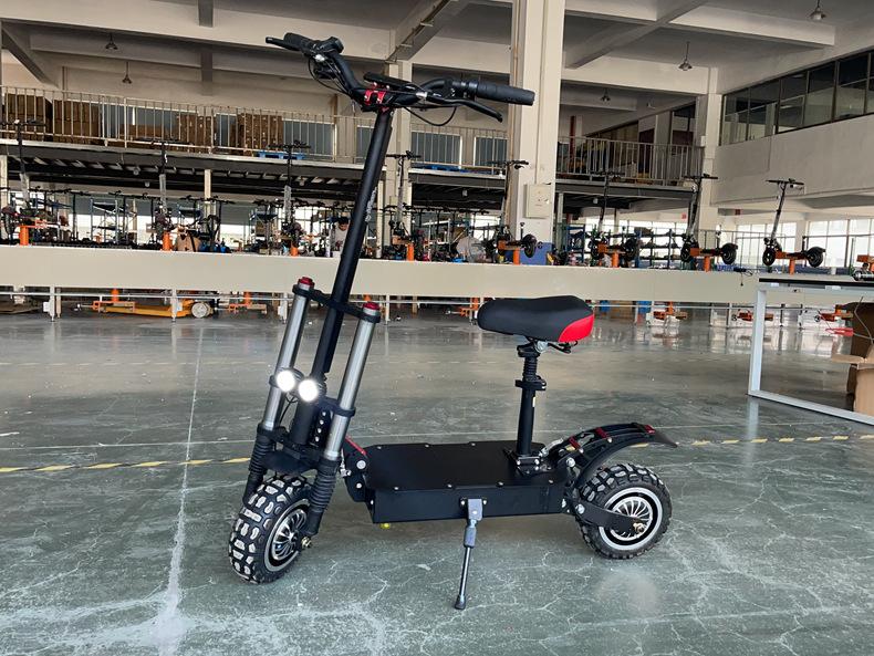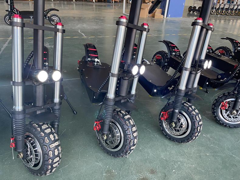 Neumáticos todoterreno de 11 pulgadas, motores duales de alta velocidad de 1200 W, llantas de aleación de aluminio, frenos de disco delanteros y traseros, marco plegable integrado, se puede colocar en el maletero, capacidad de carga de 200 KG, amortiguadores hidráulicos delanteros de doble varilla, amortiguadores hidráulicos traseros, admite el cambio entre accionamientos de motor simple y doble, velocidad máxima de 70, focos duales delanteros, pantalla LCD de instrumentos grandes centrales, velocidad, kilometraje, medidor de potencia, freno de luz trasera, iluminación delantera y trasera,El valor predeterminado es el embalaje de espuma de cartón y no tiene asiento.¡Asientos adicionales opcionales y dispositivo antirrobo remoto opcional!