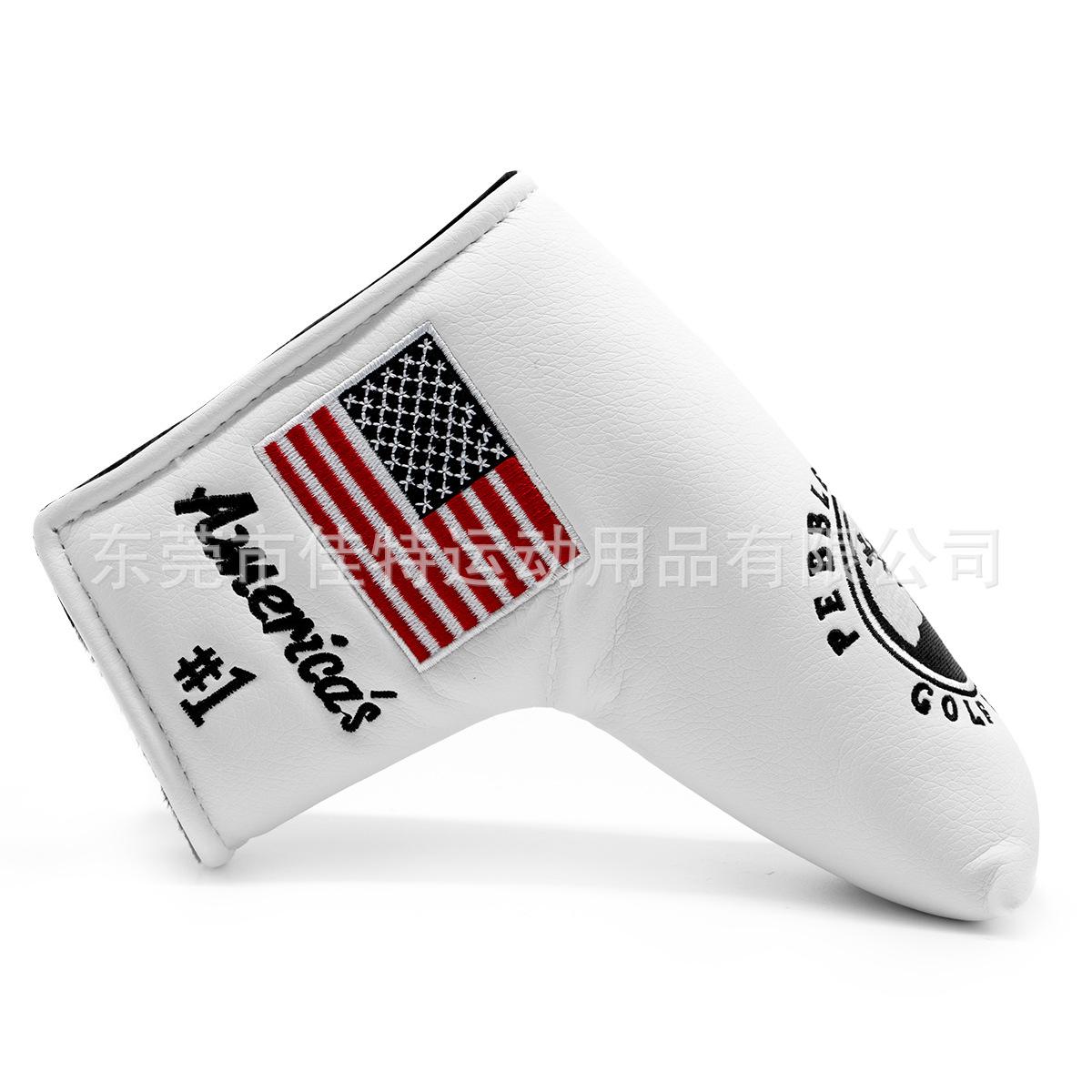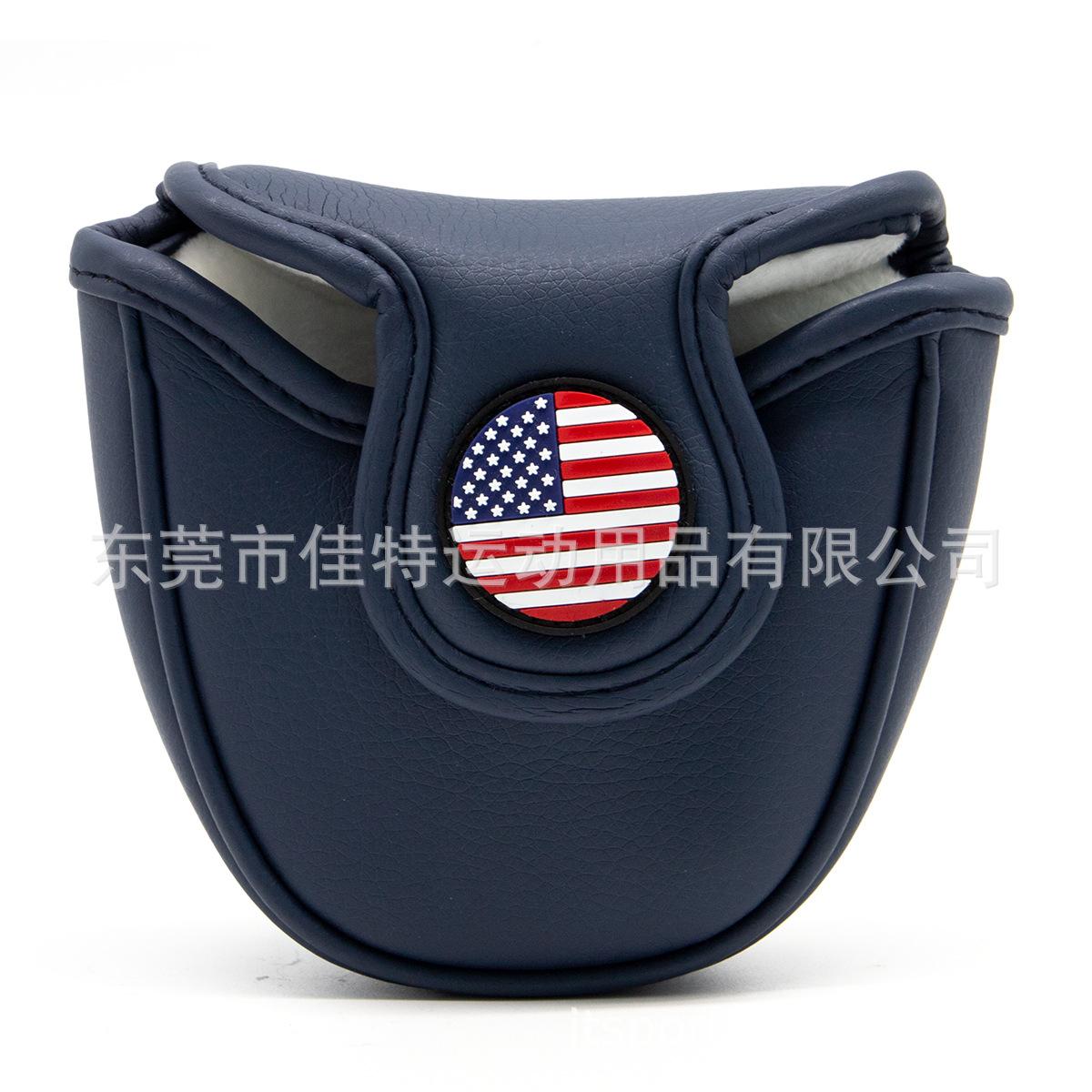 Dark blue one-word putter cover (velcro), Dark blue semicircle putter cover (magnet), White one-word putter co...