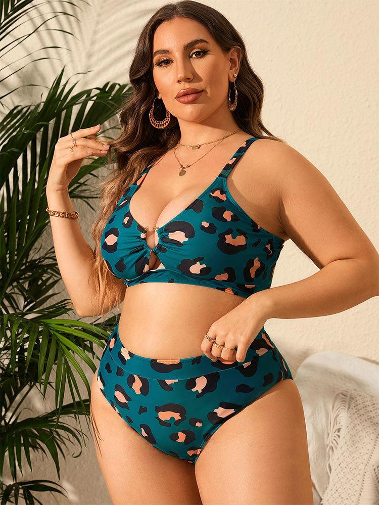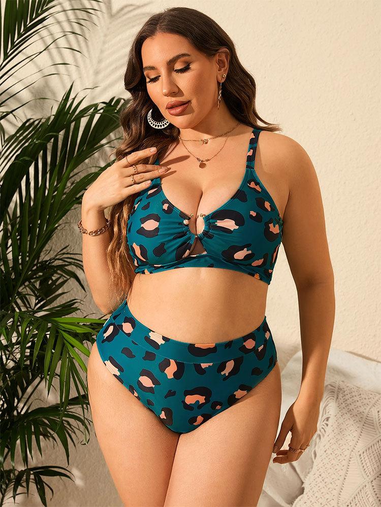 Traje de baño Amazon 2024, nuevo, estilo europeo y americano, talla grande, sexy, con estampado de leopardo, bikini de cintura alta dividido para mujer