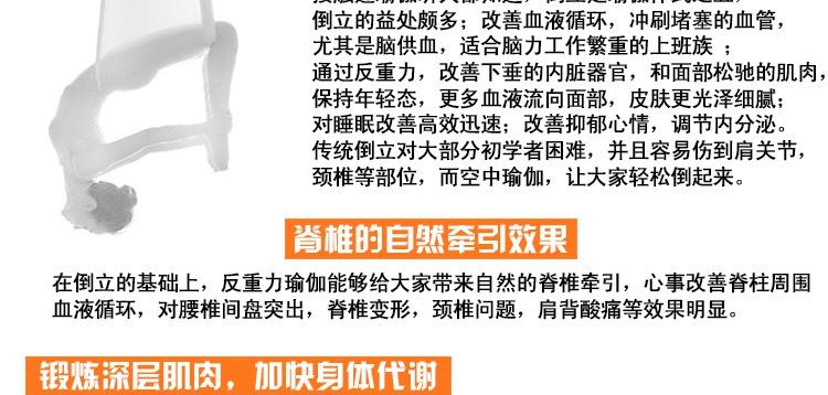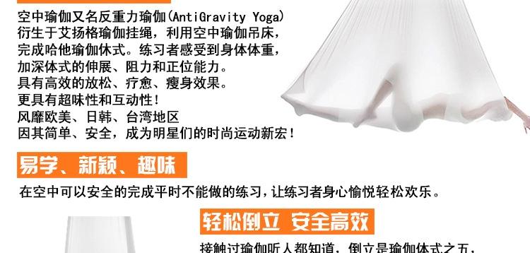 Configuración estándar: 1 tela de yoga de 2.8x5m, 2 placas fijas para colgar, 2 mosquetones, 2 cinturones de extensión (2 cuerdas protectoras anti-desgaste son opcionales)