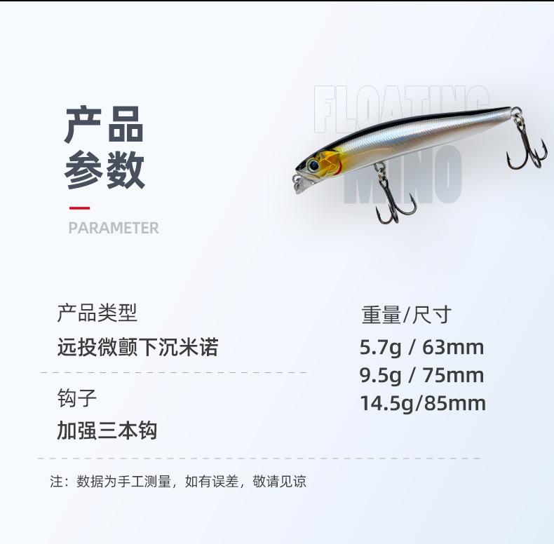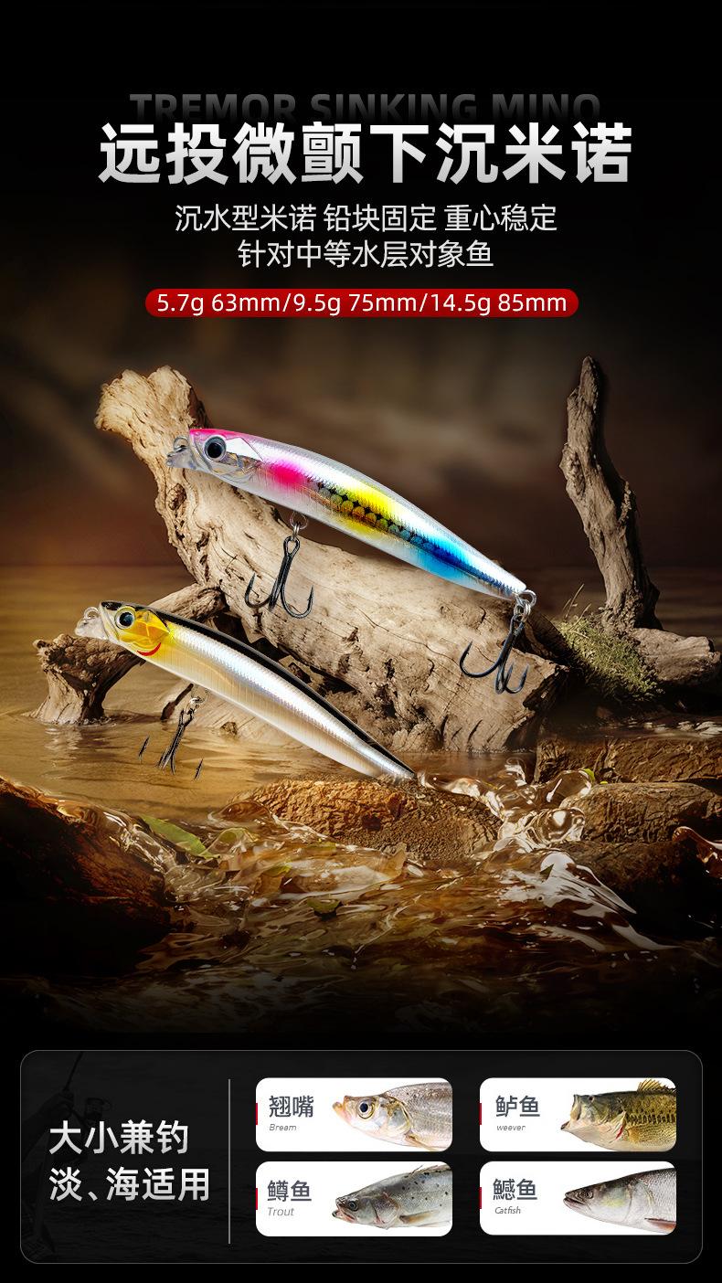Cebo de capa completa de lanzamiento lejano con vibración sumergida, lápiz Mino 5,7 g, 9,5 g y 14,5 g, cebo falso, perca, pico, pez mandarín