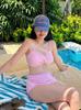 Oferta especial] Nuevo traje de baño de color liso con parte superior de tubo para aguas termales, bikini para mujer, traje de baño de playa sexy con abertura y cintura alta adelgazante