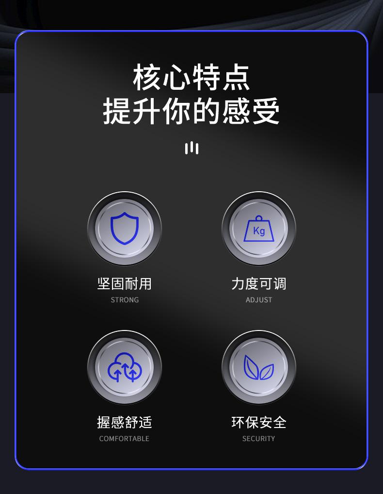 Características: El fortalecedor de agarre manual es pequeño y ligero, fácil de transportar y no está restringido por tiempo y espacio fijos; practicar con el fortalecedor de agarre manual puede aliviar la fatiga, fortalecer los músculos del practicante, ayudar a promover la circulación sanguínea, mantener las articulaciones activas y no es propenso a la inflamación.