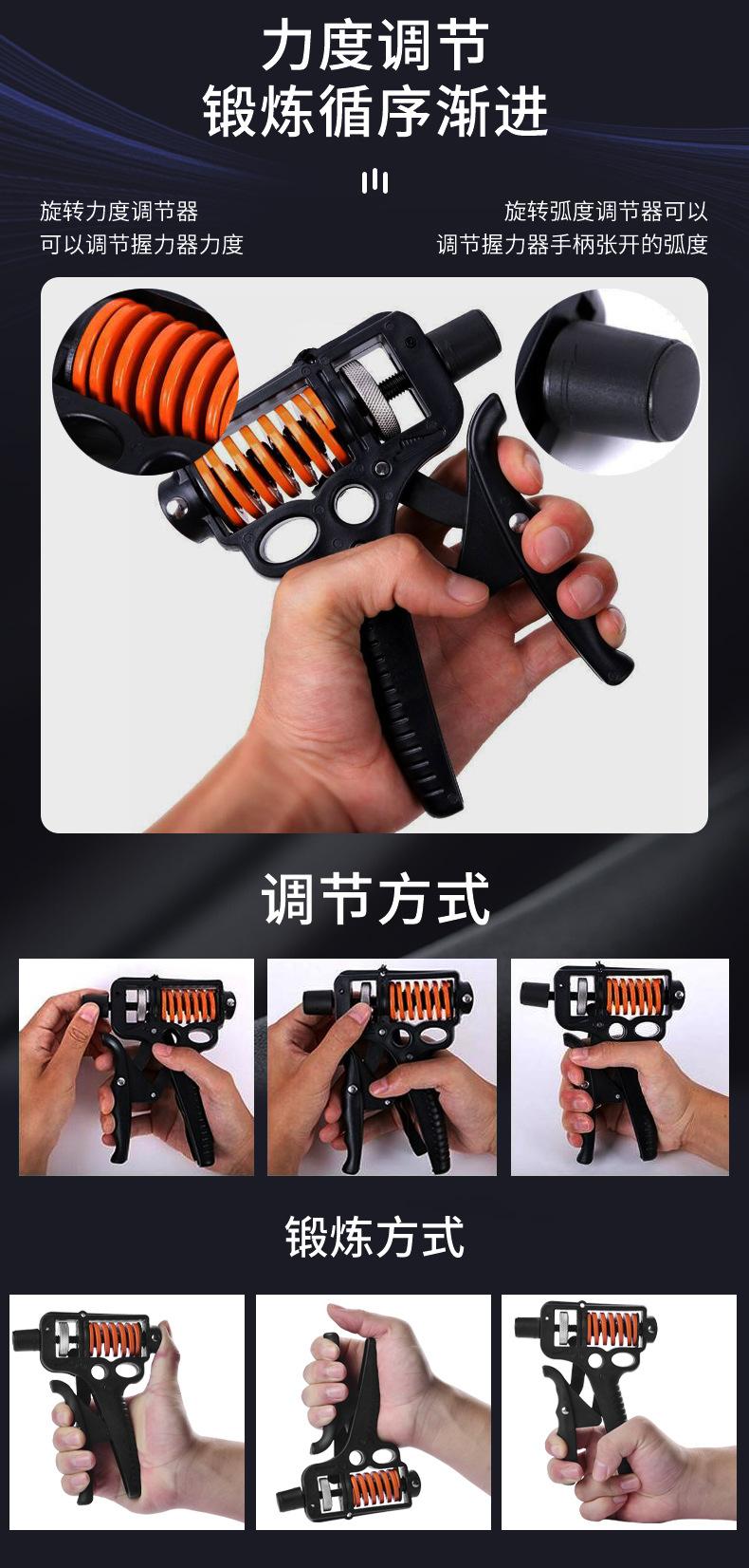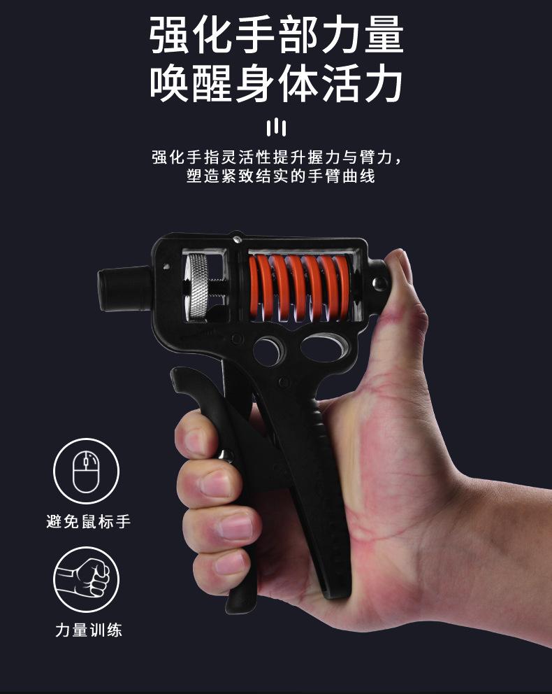Producto: Un fortalecedor de agarre es un pequeño equipo de fitness que se puede usar para entrenar la fuerza de las muñecas y los brazos. Muchos hombres tienen uno en casa, lo cual es conveniente para practicar en cualquier momento y en cualquier lugar. El uso del fortalecedor de agarre incluye una mano, dos manos, agarre superior, agarre inferior, agarre doble, etc. Diferentes posturas de uso ejercitan diferentes partes correspondientes. Los ejercicios con una mano son principalmente para ejercicios de un solo brazo, y los ejercicios con dos manos se pueden usar para practicar el uso coordinado de ambos brazos. Otras posturas ejercitan las partes correspondientes. No suelte inmediatamente después de apretar, sino mantenga la posición durante unos 5 segundos. Mantenga 20 veces seguidas como una serie. Esto será más efectivo