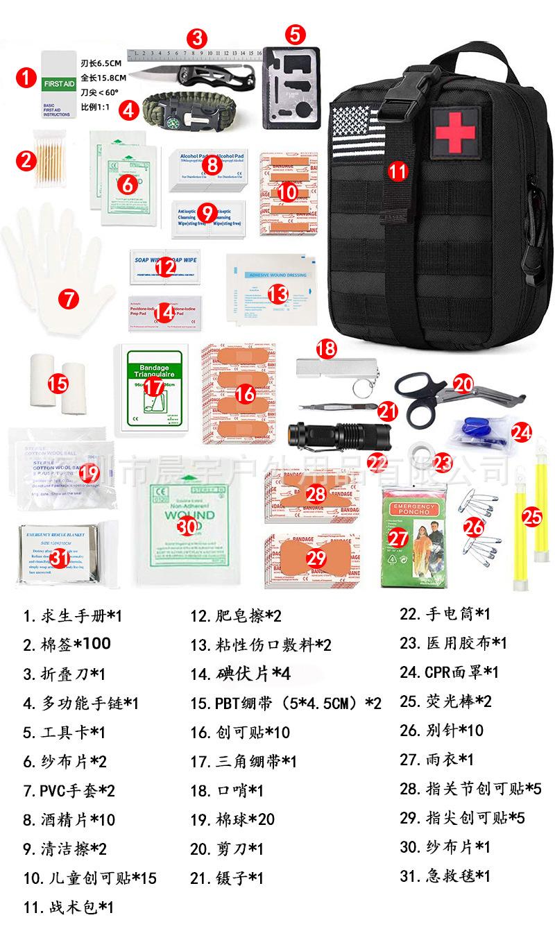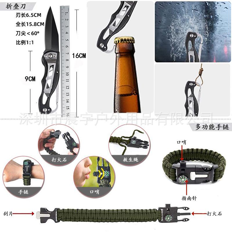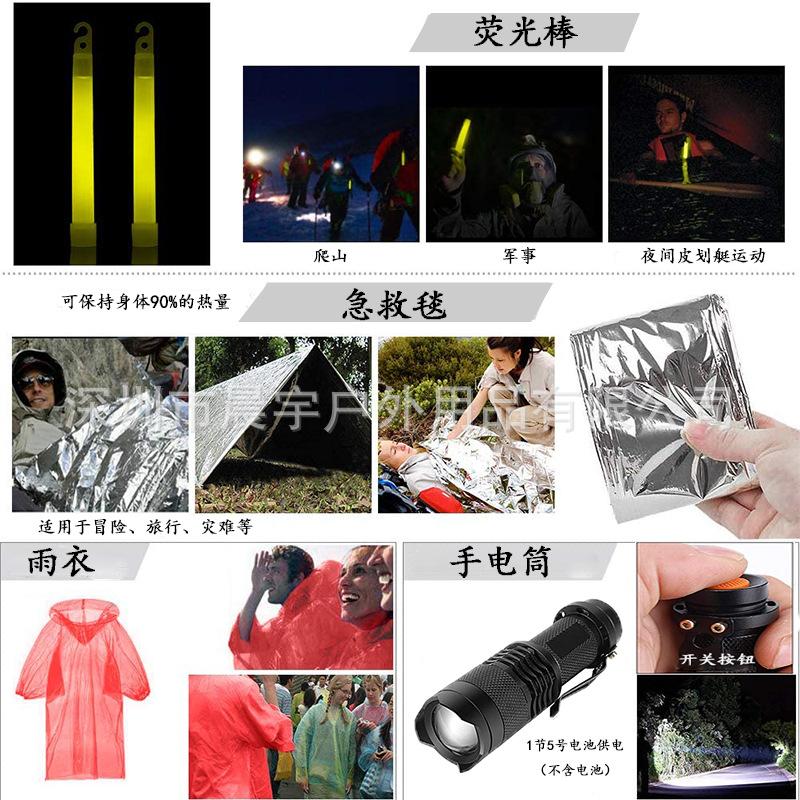 Kit de emergencia de supervivencia para exteriores, equipo de supervivencia, traje de herramientas de supervivencia, botiquín de primeros auxilios multifuncional para exteriores, suministros de emergencia SOS