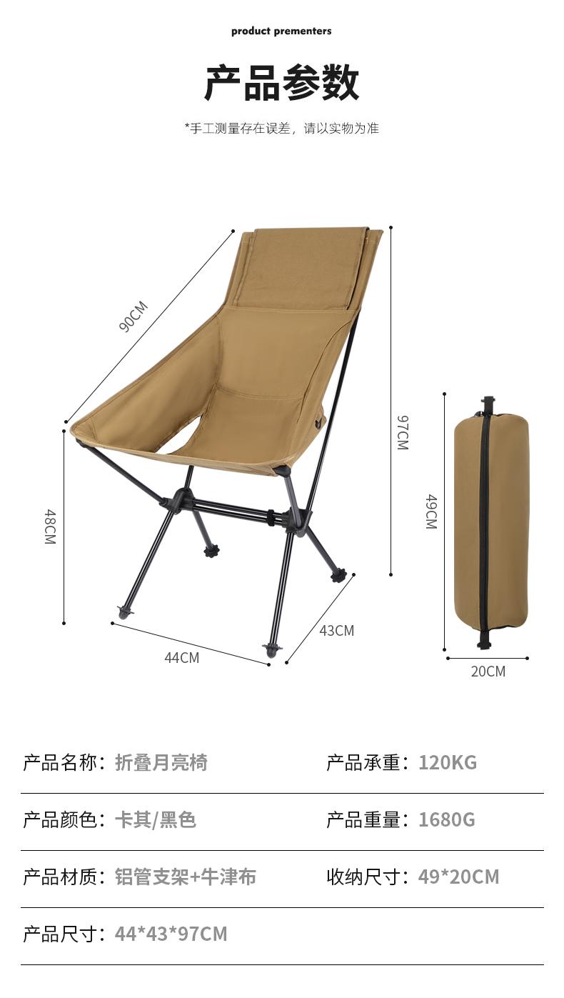 Silla de Luna de Aleación de Aluminio para Exterior Doble Barra Transversal Gruesa Respaldo Alto Lona Plegable Ultraligera Portátil Silla de Pesca Picnic