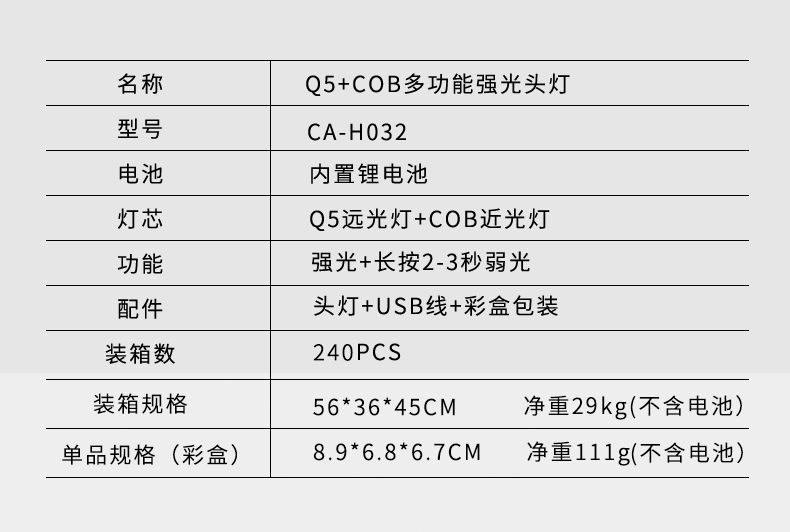 Un juego completo (cable de carga + diadema + batería recargable incorporada no extraíble) = 82g